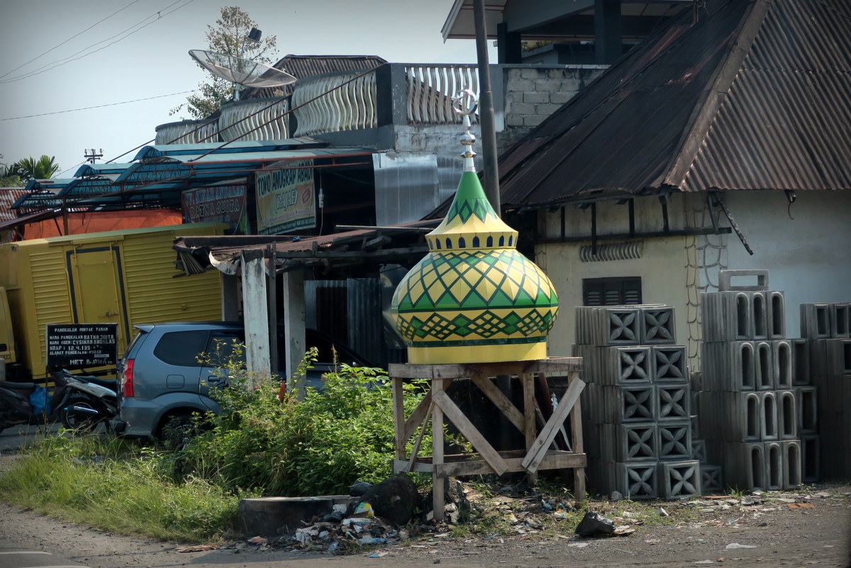 Это значит где-то рядом мечеть строят. Минарет ещё не готов, а традиционную крышу для него уже доставили.
