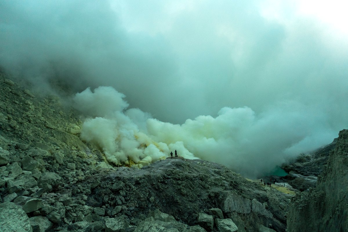 Иджен - действующий вулкан на самом востоке острова Ява. Последнее магмовое извержение тут было в 19-м веке, но вулкан периодически выбрасывает облака пепла, и постоянно дымит серой. Именно сера и создаёт все самые дивные, и в то же время опасные чудеса этого вулкана. Здесь я узнал про серу больше, чем когда-либо думал возможным, а так же встретил людей, рискующих здоровьем и жизнью, чтобы её доставать.