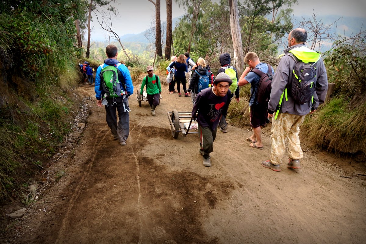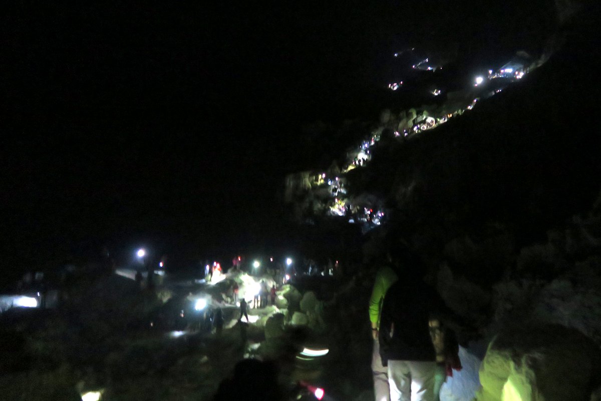 половина пути вниз в вулкан не совсем тропа, а просто камни (достаточно высокие) по которым надо карабкаться и вполне реально упасть (ночь, света нет, куча людей проходят очень тесно).