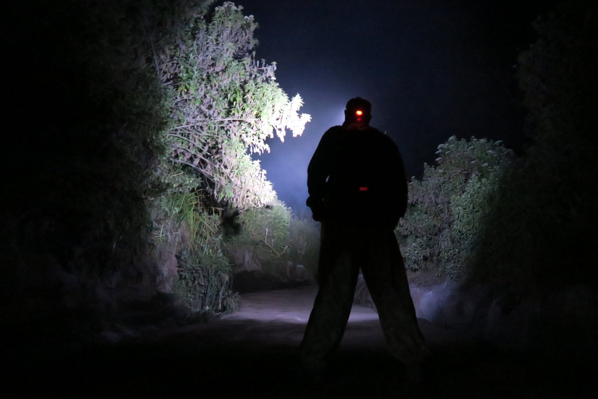 Организаторы объяснили нам, что лучшее время для посещения вулкана - поздно ночью. Именно тогда хорошо видно его уникальный голубой огонь. Из отеля выехали где-то в полночь, к парковке у вулкана прибыли к двум. Так что мы все запаслись фонариками.