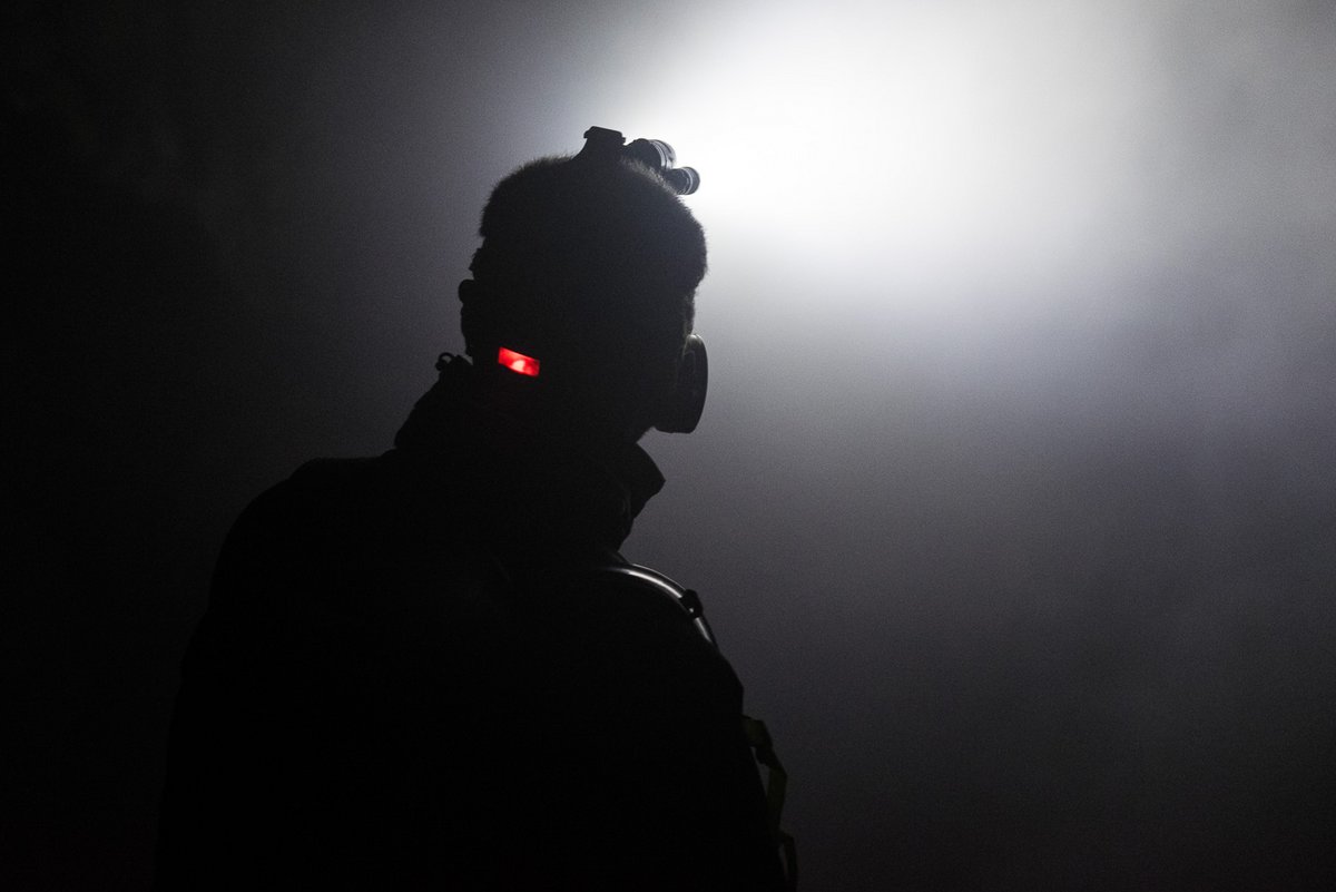Действительно, в сторонке от общего дурдома один из шахтёров при свете фонаря рассматривал куски серной породы, которые он успел наколоть.