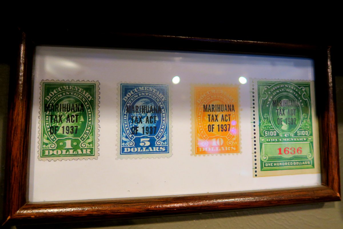 На самом деле, это разрешения на производство марихуаны, введённые в 1937 году, когда государство впервые ввело контроль над растением. На тот момент единственным прецедентом запрета какого-либо вещества в США был Сухой Закон, но он потребовал поправки к Конституции. Так что правительсво не решилось на откровенный запрет и постановило, что для продажи марихуаны нужно было владеть вот такими марками. Загвоздка была в том, что их практически никому не продавали.