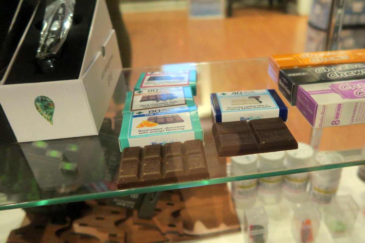 Ещё покупателю предлагают широкий выбор разного марихуанового хавчика. Вот эти шоколадочки, например, содержат достаточно травы, чтоб "приятно успокоить" клиента, со слов продавщицы.