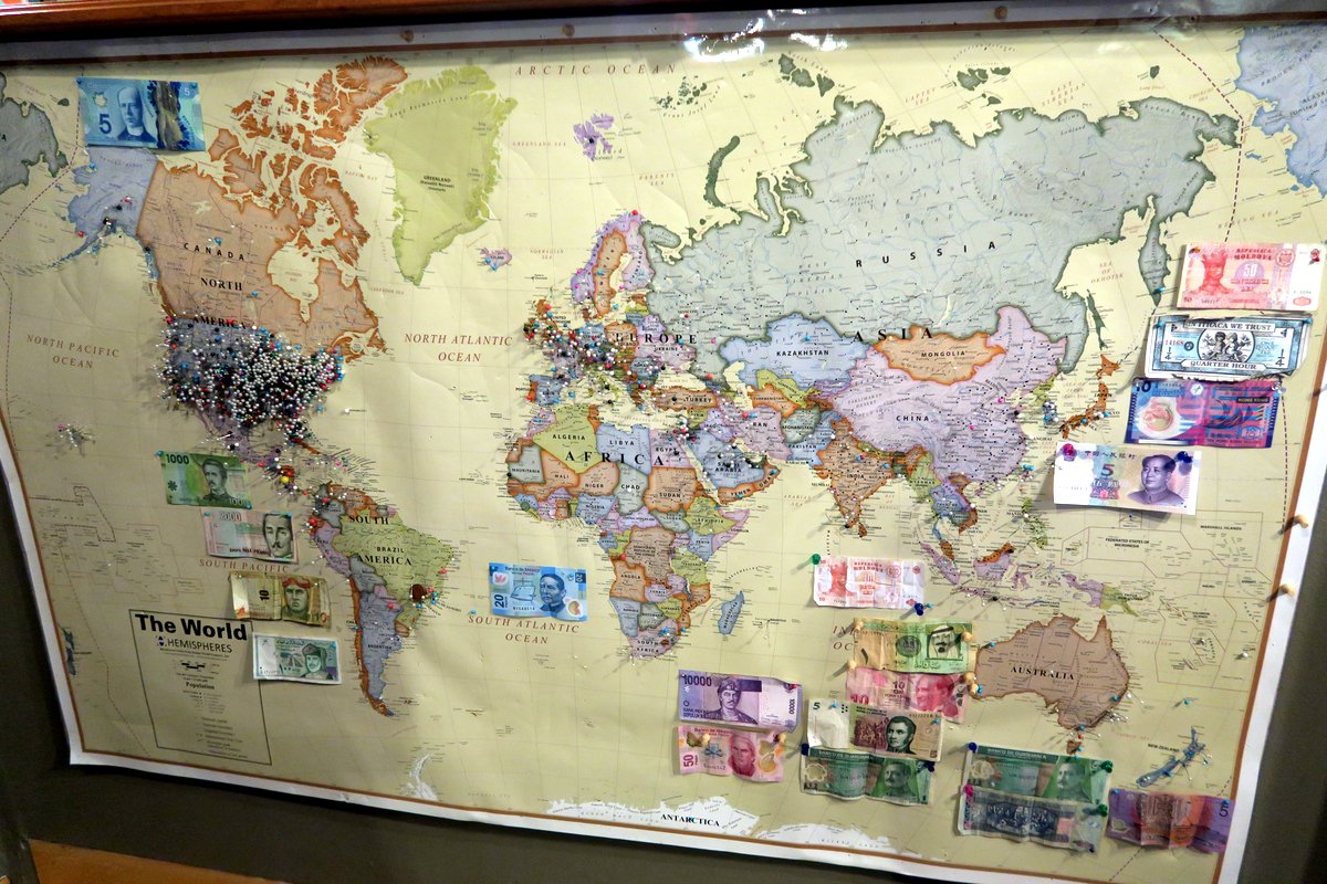 Так вот, здесь в первой комнате ничем не торгуют, зато висит карта клиентов, на которой каждому предлагают булавкой отметить город, откуда он приехал. Около Нью Йорка никакого места не осталось, так что я решил воткнуть булавку в Москве, хоть я оттуда давненько уехал.
