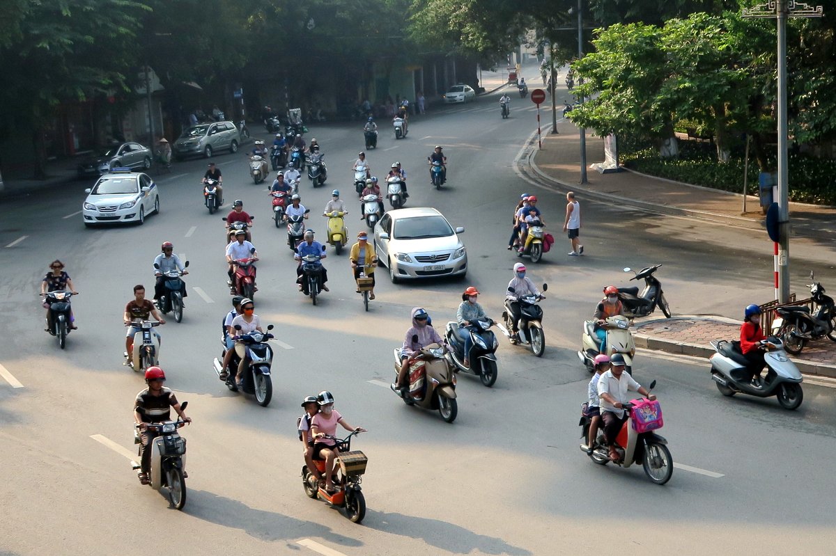 Даже рано утром на каждую машину по дорогам Ханоя мчатся дюжины мопедов.