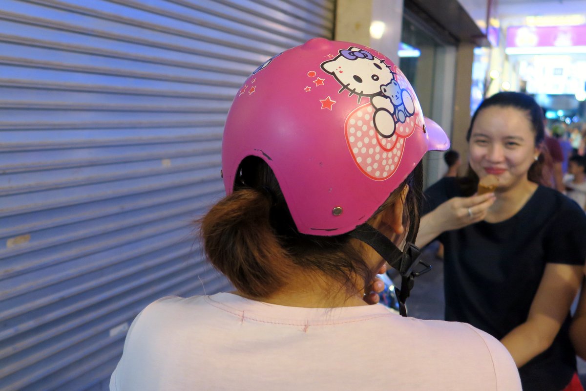 Главный аксессуар истинного вьетнамца - его мопедный шлем. Они продаются подешёвке на каждом углу, можно выбрать шлем на любой случай жизни. В других странах водители и пассажиры мопедов гораздо более разгильдяйски относятся к защите в головы. Во Вьетнаме никого не встретишь ездющим без шлема.