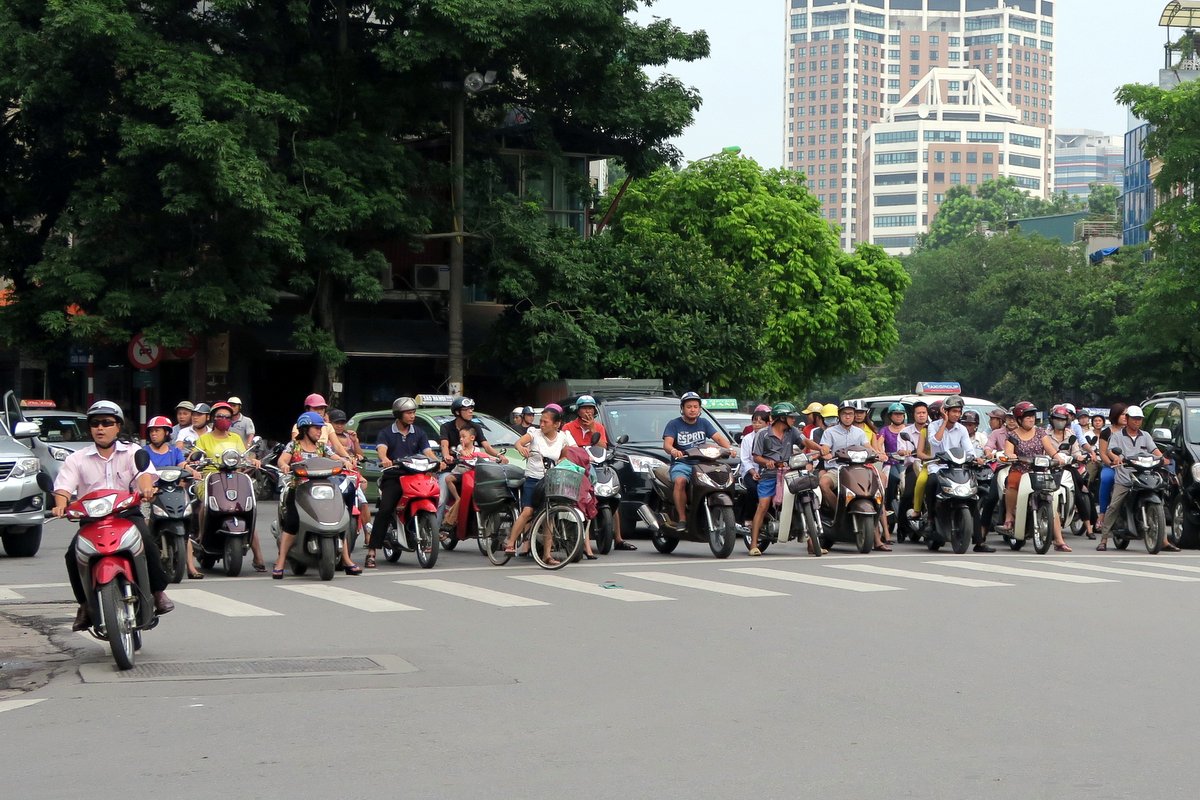 Постоянные потоки каким-то непонятным образом пересекаются на ходу не останавливаясь. Светофоров в Ханое - раз, два и обчёлся, а на те что есть практически никто не обращает внимания. Мопеды ездят "по-понятиям", искуссно объезжая друг-друга. Не останавливаются они и для пешеходов. Чтоб перейти улицу нужно достичь состояние дзена: надо просто двигаться на рожон с постоянной скоростью. Водители мопедов сами рассчитают твою траекторию, и объедут. При этом мопеды практически никогда ни во что не врезаются. Как так получается я не совсем понял.