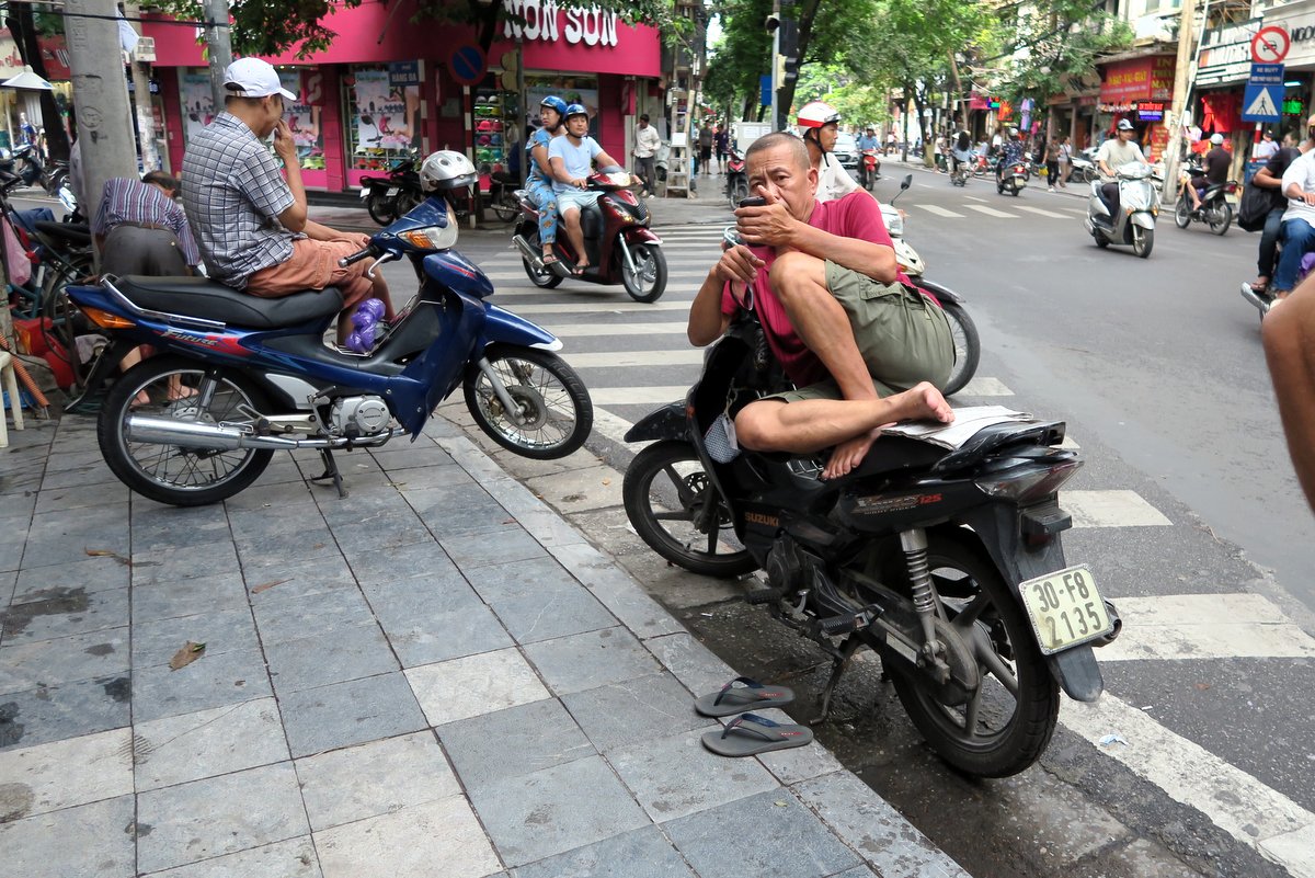 Припаркованные мопеды занимают тротуары, а движущиеся постоянно угрожают выдавленным на проезжую часть пешеходов. Всё время пока мы гуляли по Ханою, я не мог расслабитсья, и отогнать чувство, что вот-вот в меня врежется какой-нибудь невнимательный водитель на скутере.