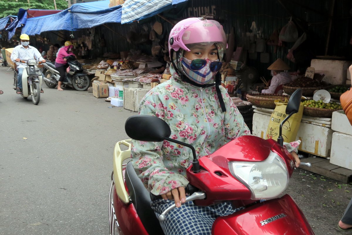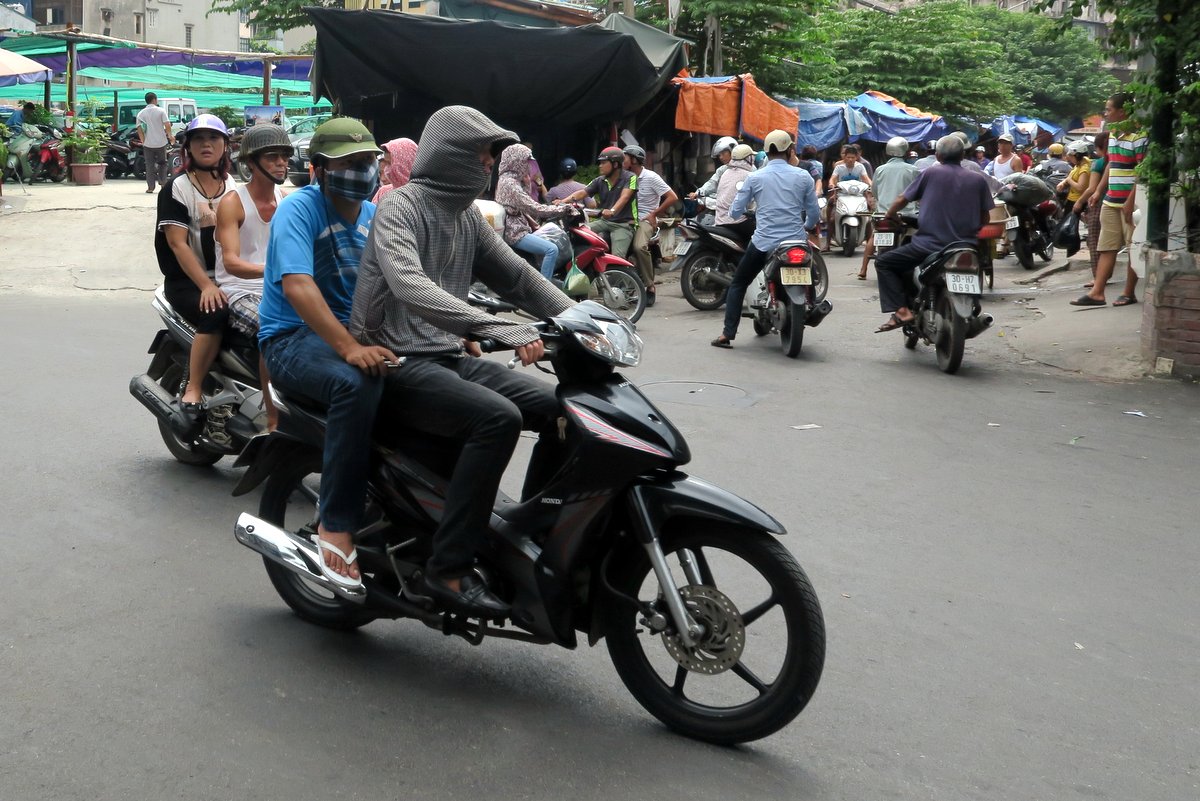 Вообще удивительно, но вьетнамцы при дикой жаре и влажности разъезжают по городу укутанные с ног до головы. Не понимаю, как им не жарко...