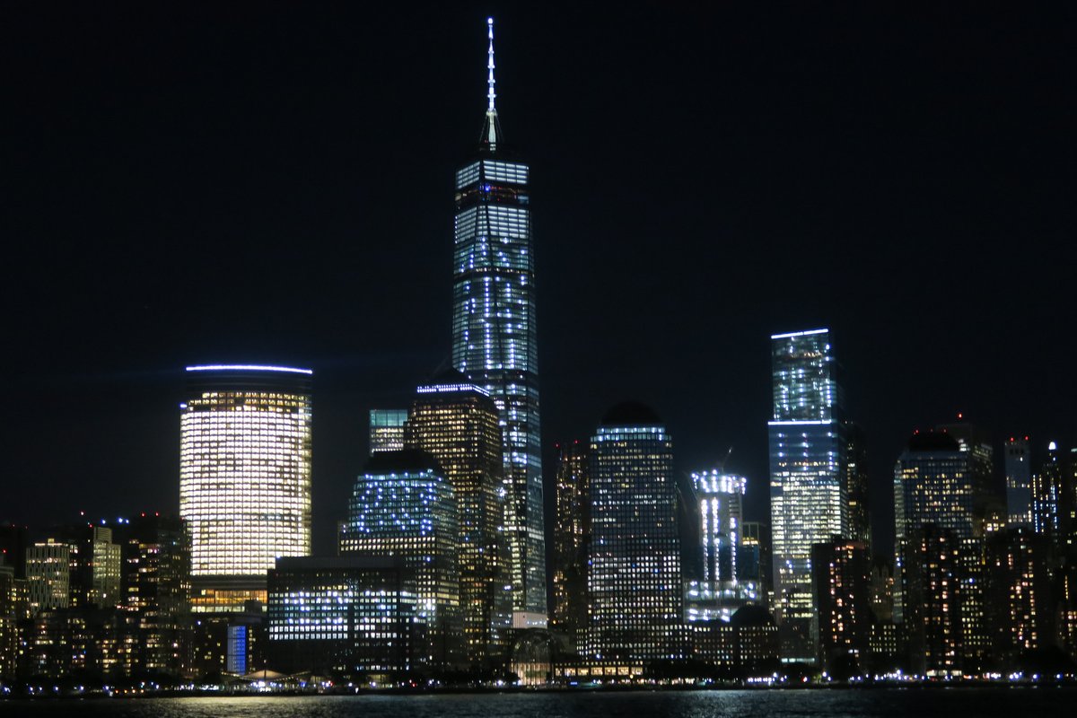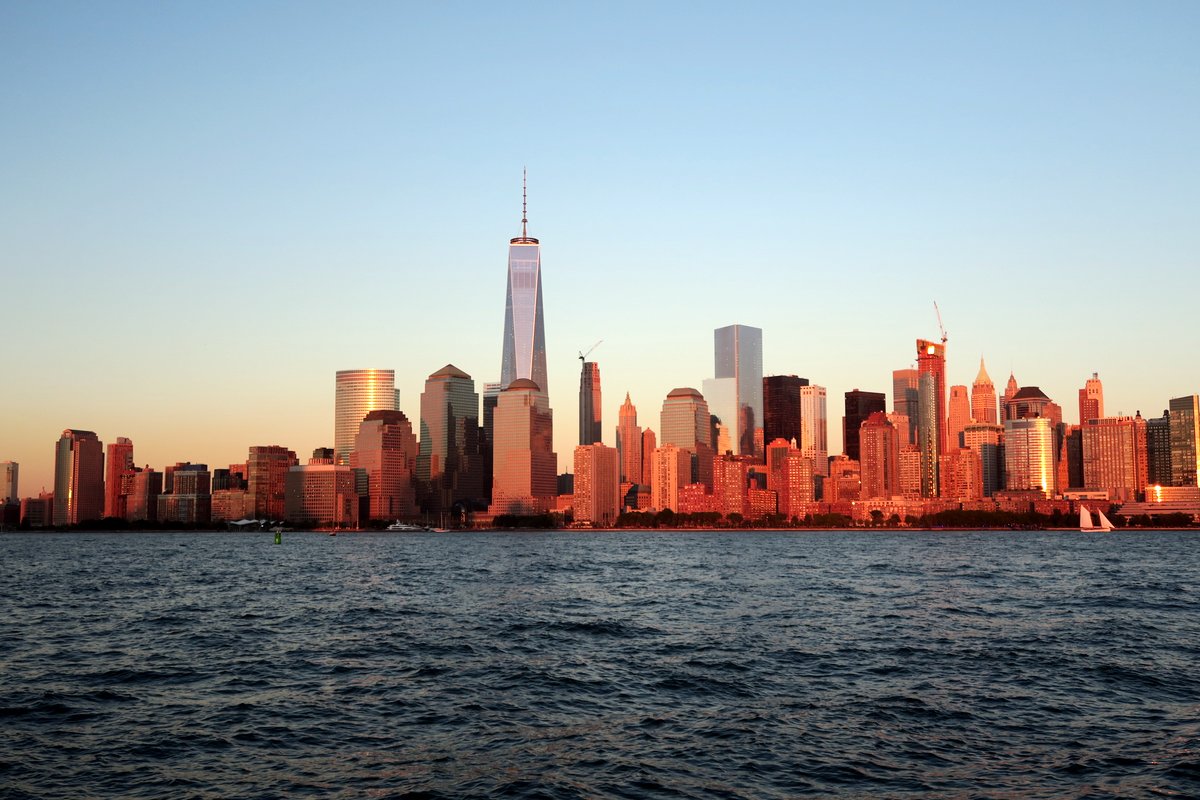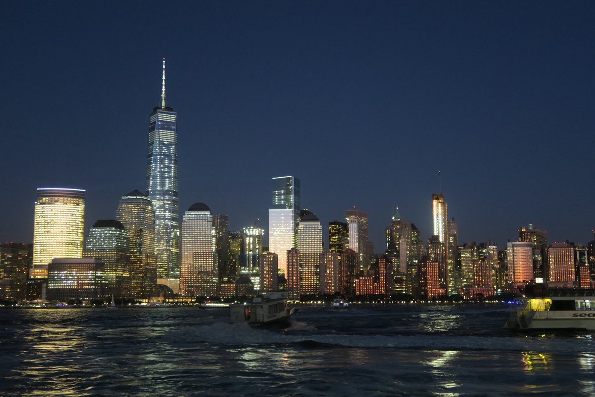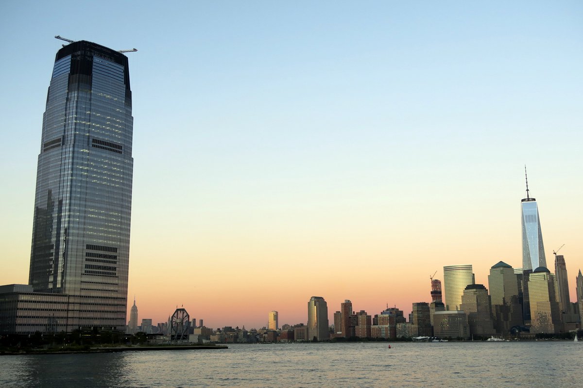 С воды хорошо видно два самых высоких небоскрёба в наших двух штатах. Слева - 42-этажная башня Голдман Сакс, справа - 94-этажная One WTC.