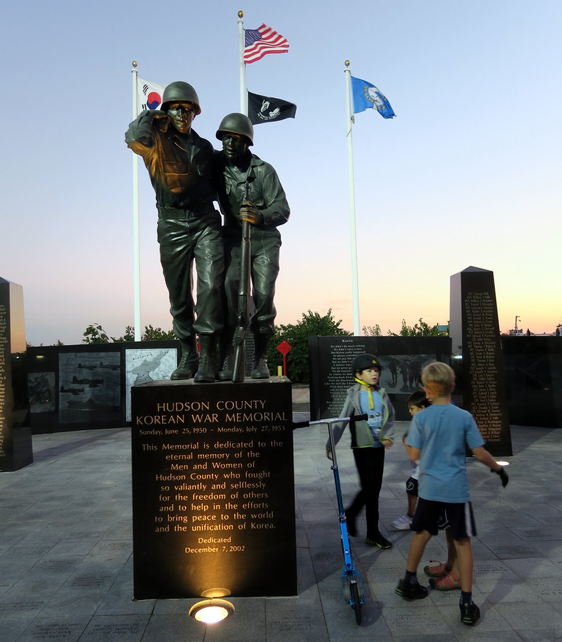 Есть на набережной Джерси Сити и другие памятники. Вот например, композиция памяти солдатам корейской войны. Сегодня около неё весело играют дети.
