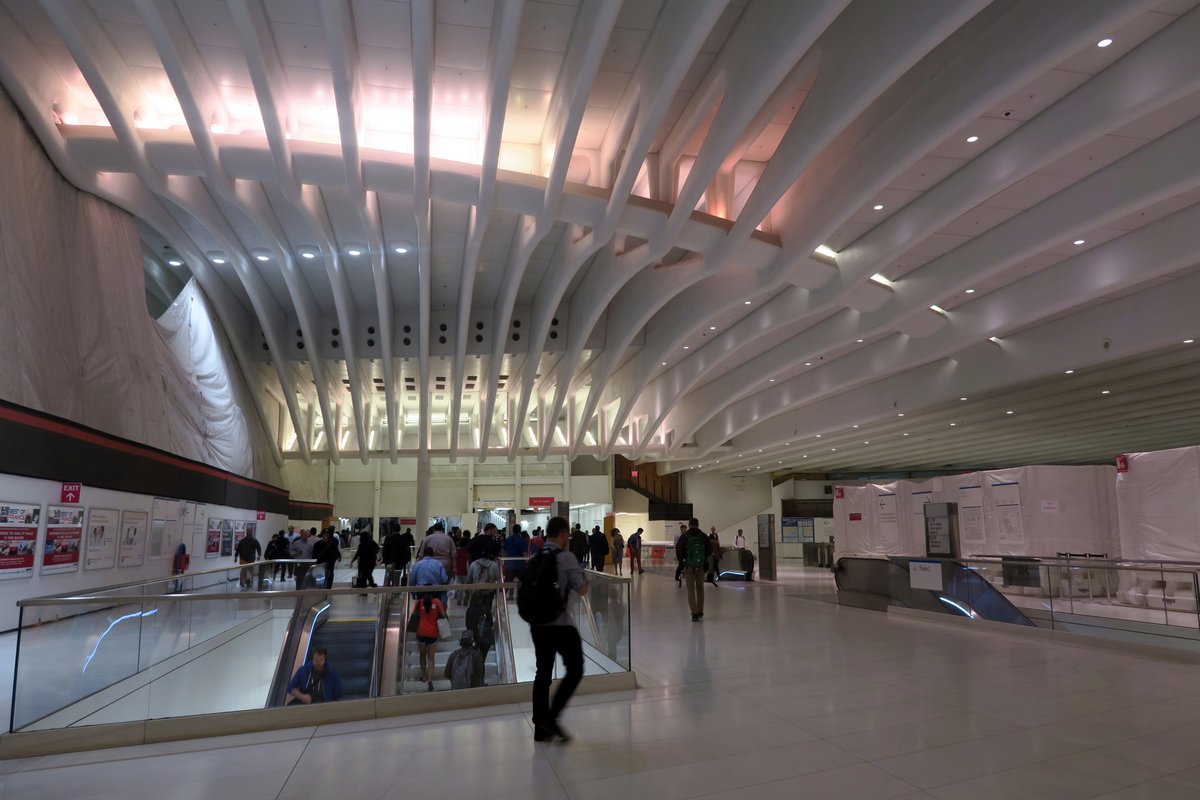 Погуляли и хватит - нам ещё на ужин ехать, а все знают, что в Нью Джерси нормальной еды быть не может. Обратно ехали тем же поездом Path, и вышли прямо в незаконченнык переходный корридор дизайна Калатравы. Жду когда его достроят, но он и сегодня уже красиво выглядит.