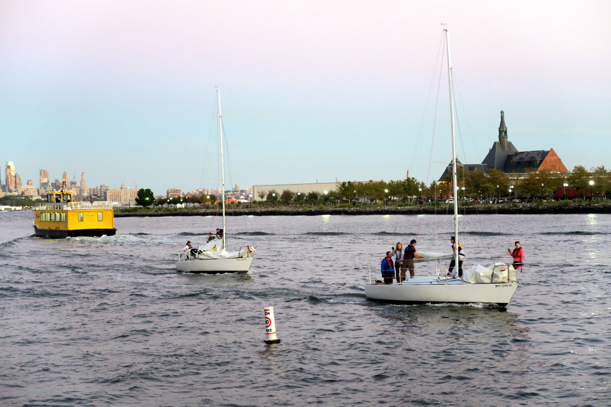 Но мы хотели ещё пару вещей успеть посмотреть до темноты. Берег Джерси Сити изрезан длинными заливами, которые пришлось бы долго обходить из за отсутствия мостов. К счастью через них можно переправиться на пароме, который вообще-то ходит в Нью Йорк, но делает маленький крюк, чтоб пешеходам не приходилось делать большой.