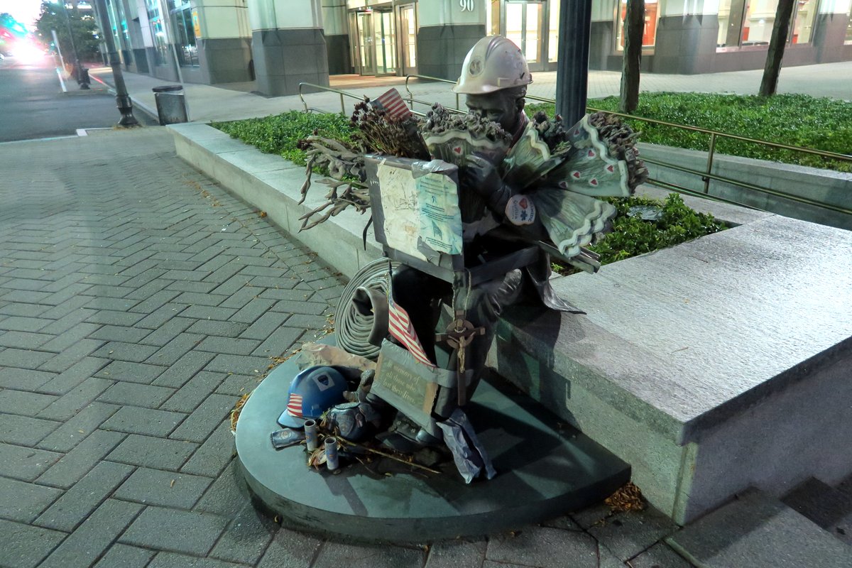 Сзади постамента зачем-то прилепили мемориальную доску жертвам 9/11. Неясно зачем это надо.