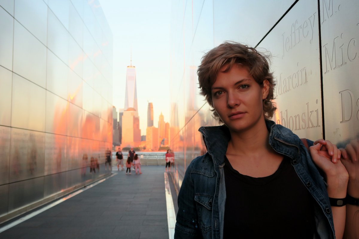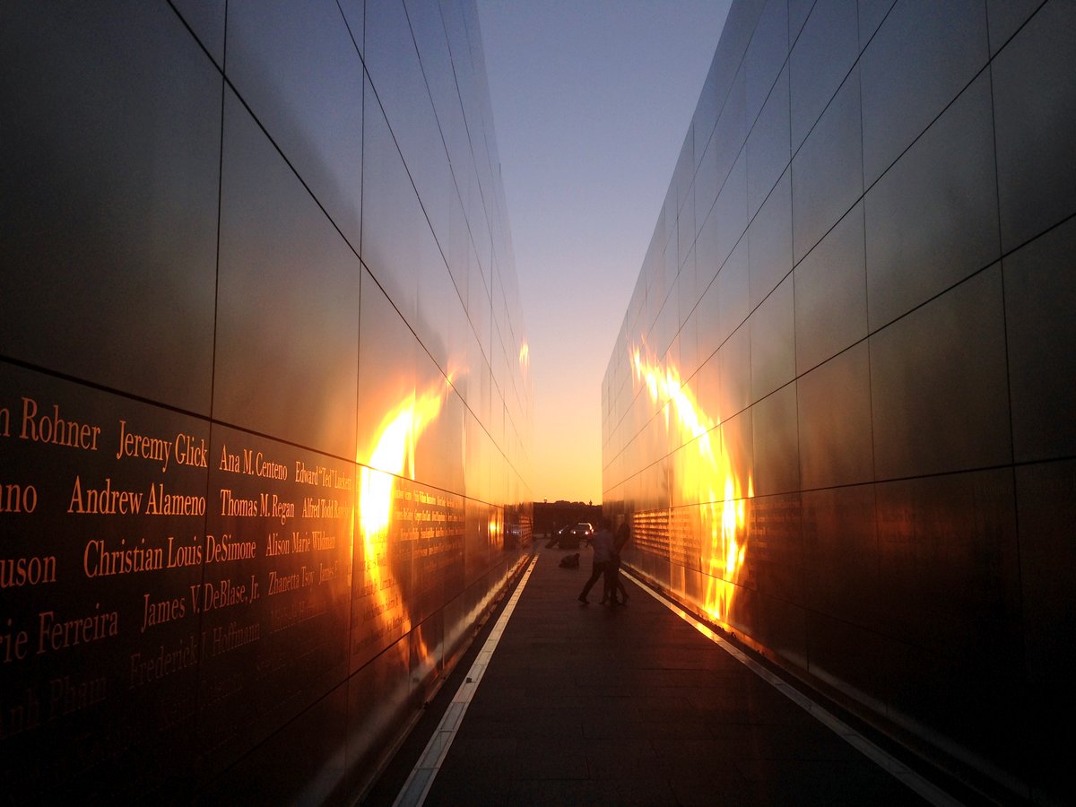 На стенах написаны имена жертв теракта. Мы приехали туда как раз к закату, и солнце огненным кольцом отражалось в зеркальной поверхности стен.