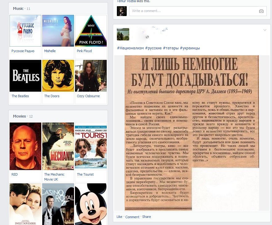 Но это всё лишь присказка. Сказка вот в чём. Недавно я гулялна работе по просторам Фейсбука, и набрёл на такое очень анти-украинское высказывание под одной из фотографий какого-то френда. Ну что-то про фашистов-бандеровцев, и деды воевали. Я всегда когда такие вижу захожу посмотреть, что это за человек такой, с которым у меня общие друзья. И тут, на этом акаунте вот такое: