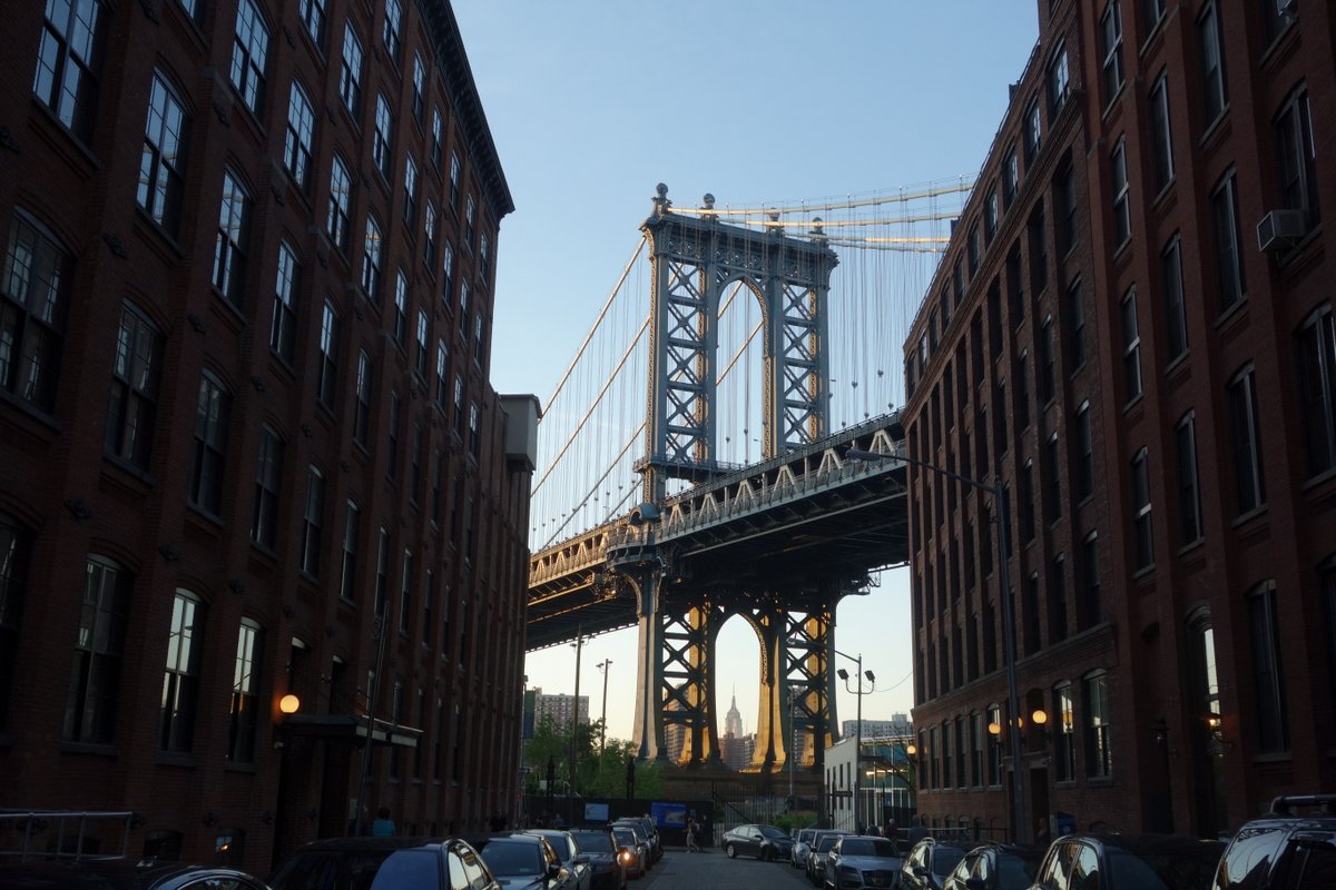 Прогуливаясь сегодня по Нью Йорку с подругой из Японии, проходили мимо Дамбо, и так случилось что мы были там во время заката. Я показал ей место откуда открывается вид на невозможный кадр - долго объяснял почему его не получается сфотографировать... И тут же "на всякий случай" опять попытался сделать это сам.