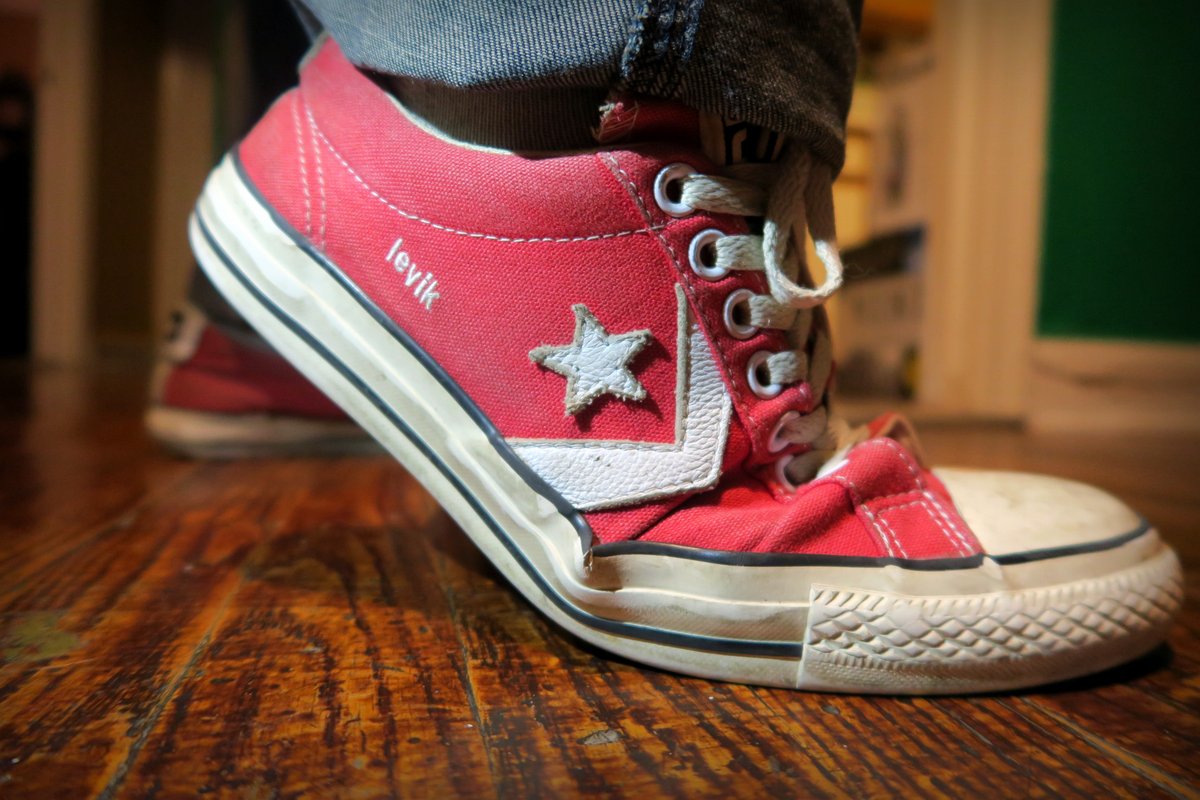 Тут надо сделать лирическое отступление, и сказать, что я к своей обуви отношусь весьма трепетно. 95% времени я ношу или любимые ботинки, которые каждый год обновляю, или красные кеды. Кеды после некоторого времени активного употребления всегда трескаются-отклеиваются в одном и том же месте, причём одновременно на обеих ногах.