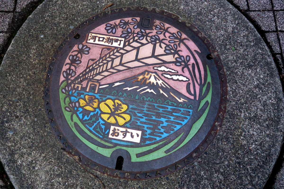 Так выглядят люки в городке Фудзи-Кавагутико, где над озером открывается вид на гору Фудзи