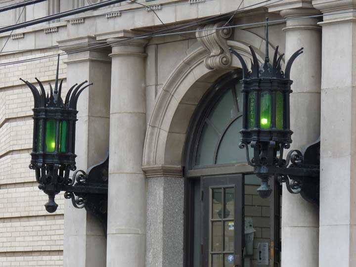 Это пара зелёных фонарей, которые по традиции устанавливаются по бокам от главного входа в полицейское здание Нью Йорка.