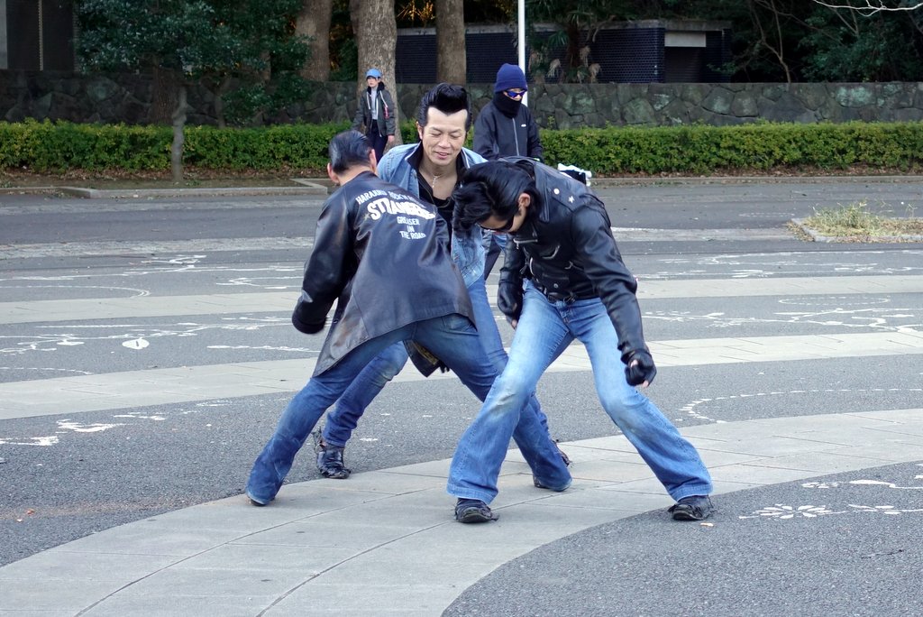 В Токио действительно есть всемирно-известная тусовка танцоров. Каждое воскресенье они собираются у входа парка Ёёги, и устраивают там танцульки под рок-н-ролл в стиле 1950х и 60х. Но то весной и осенью. А вот будут ли они там зимой в такой мороз - в этом я совсем не был уверен. Но мы решили на всякий пойти посмотреть. Как оказалось, зря переживали.