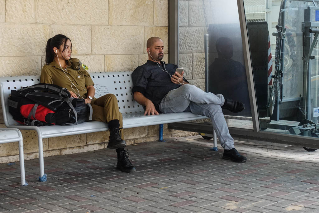 Когда турист попадает в Израиль, первое, что бросается в глаза это девушки в военной форме. Сами израильтяне давно привыкли к этому зрелищу, а вот для приезжих - и для мена в том числе - вид молодых симпатичных девочек в военной форме не перестаёт быть в диковинку. Мне постоянно хотелось их сфотографировать, и при этом я конечно же стеснялся это делать открыто. Мне кажется, что сорокалетний мужик, фотографирующий на улице 18-20 летних девочек это как-то странно, особенно, если половина из них носят с собой огромные автоматы.