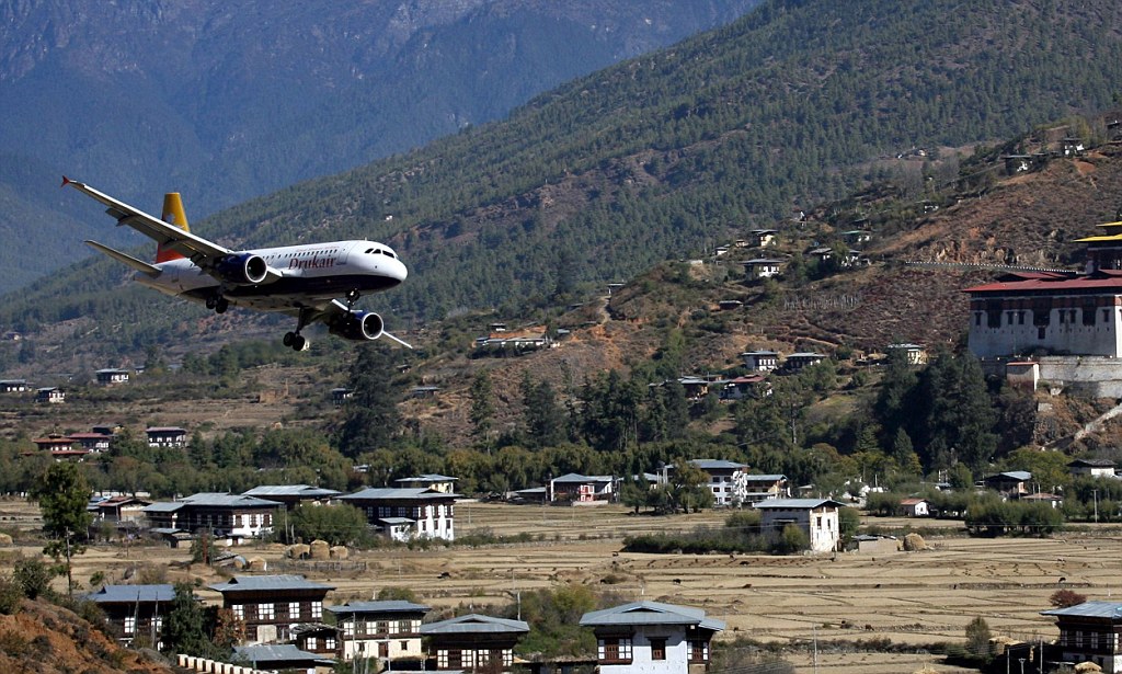 Главный (и единственный) международный аэропорт Бутана находится в городе Паро. Это третий по населению город страны, но по западным меркам больше похож на крупный посёлок: здесь живёт всего 11,000 человек. Однако практически все посетители из-за границы прилетают именно сюда. И платят немалые деньги. Причём не только за путёвку в Бутан, которая стоит от $250 в день, но и за авиабилеты, на довольно короткий рейс, чтобы сюда прилететь.