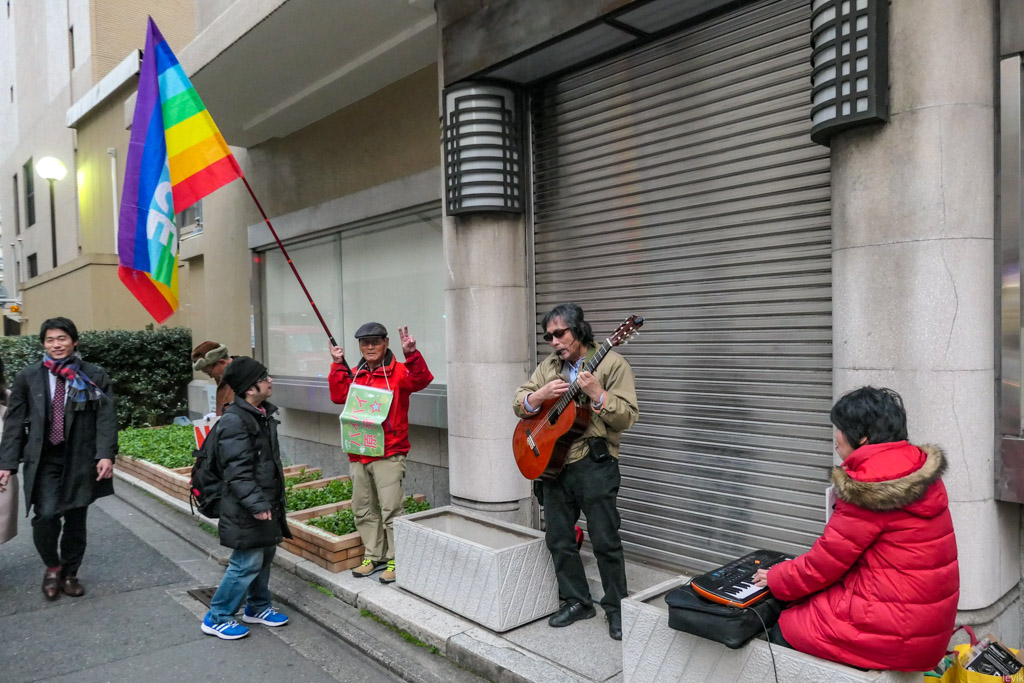 Я человек любопытный, и мне всегда интересно узнать, против чего люди протестуют. Эти выкрикивали лозунги на японском, которые я не понимал, но зато мне в глаза тут же бросился радужный флаг. "Неужели это какая-то гей-акция?" подумал я. Но, оказалось, что нет.