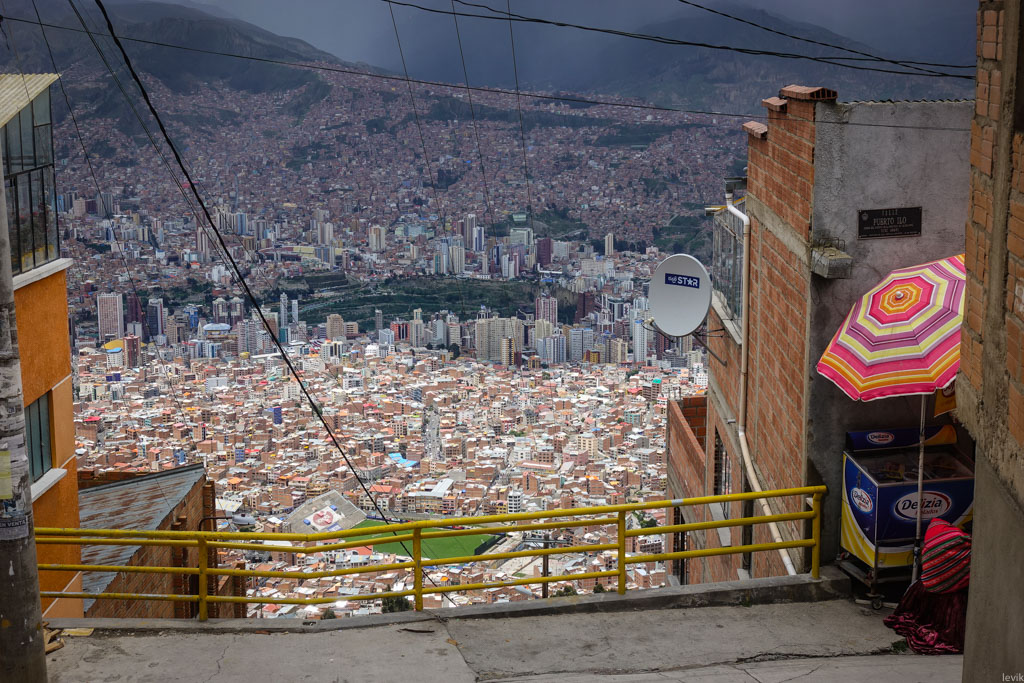 Понимаете, Ла-Пас, расположенный на склонах довольно крутых гор, представляет собой царство самостроя. Большинство этого города состоит из хаотично разбросанных кирпичных халуп с крышами из листового железа. Они в прямом смысле тянутся от горизонта до горизонта, заполоняя собой всё визуальное пространство.