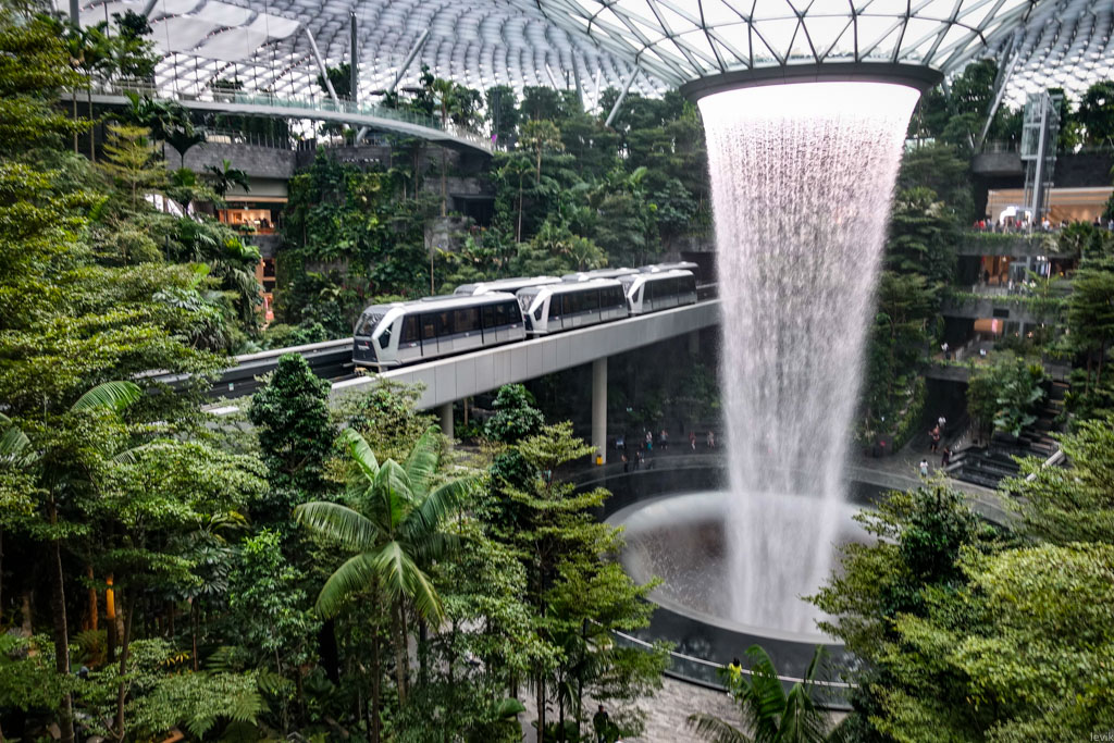 Возможно вы уже видели его фотографии в сети - футуристические джунгли, огромный водопад, небольшой поезд, который идёт по путям в воздухе... Короче, я не мог такое пропустить, и исследовал эту новинку перед вылетом из Сингапура.