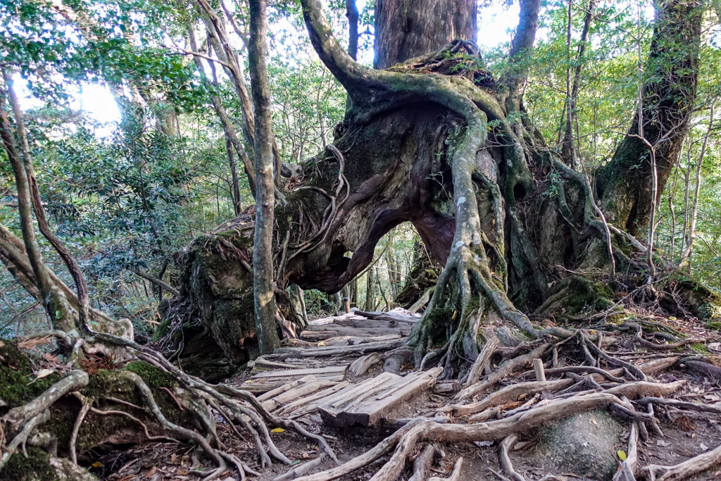 На японском острове Якусима растёт особая порода деревьев-долгожителей. По некоторым оценкам древнейшему из них уже больше семи тысяч лет. Местные называют это дерево "Дзёмонсуги", и чтобы увидеть его путешественнику придётся хорошенько попотеть. Пешеходная тропа к древнему великану проходит через дремучий лес, полный старых деревьев, переплетённых веток, и поросших мхом камней.