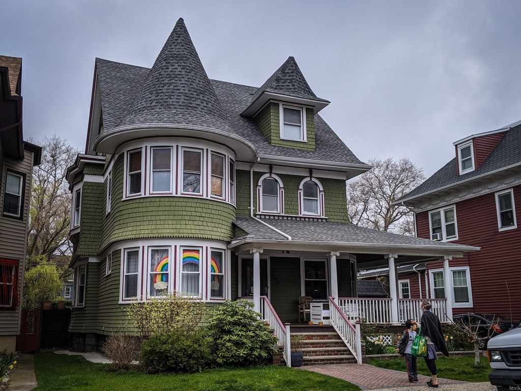 Весь апрель, во время своих вылазок из карантина за кофе, я замечал, что в окнах моего района всё чаще и чаще появляются детские рисунки с радугами. Я уже рассказывал вам, что рядом со мной живут состоятельные люди, владельцы отдельно стоящих "теремков" в так-называемом викторианском стиле. Так вот, в их окнах - но не только - я начал замечать эти пёстрые картинки.