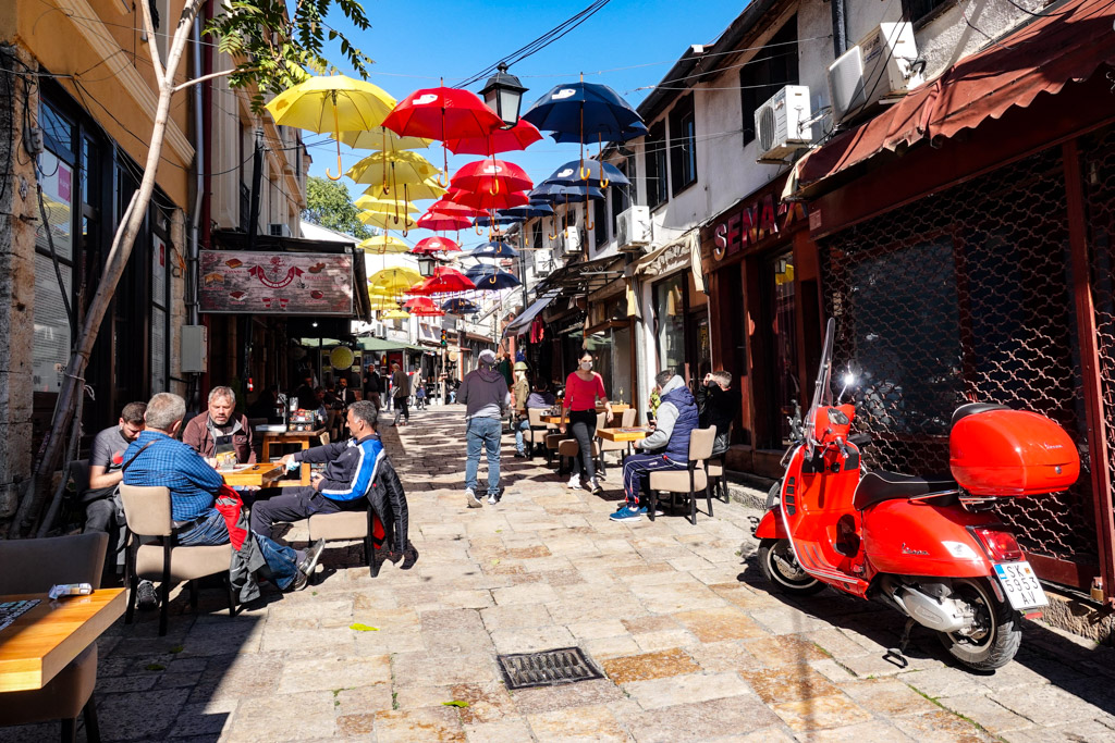 "Ступай через реку," сказали мне. "Там старый город - османское наследие, базар, узкие улочки, кафешки - всё как ты любишь!" Так я попал в район старого Скопье. Его называют крупнейшим базаром на Балканах, хотя самые приятные его части - никакой не базар, а просто улицы с кафе и магазинчиками.