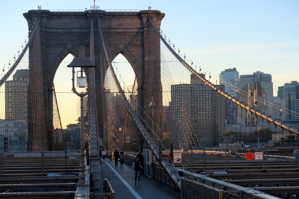 Кстати середина Бруклинского моста - лучшее место в Нью Йорке для встречания рассвета. Это я говорю на случай, что вы приехали, и у вас вдруг джетлаг. Всё равно же рано встанете!