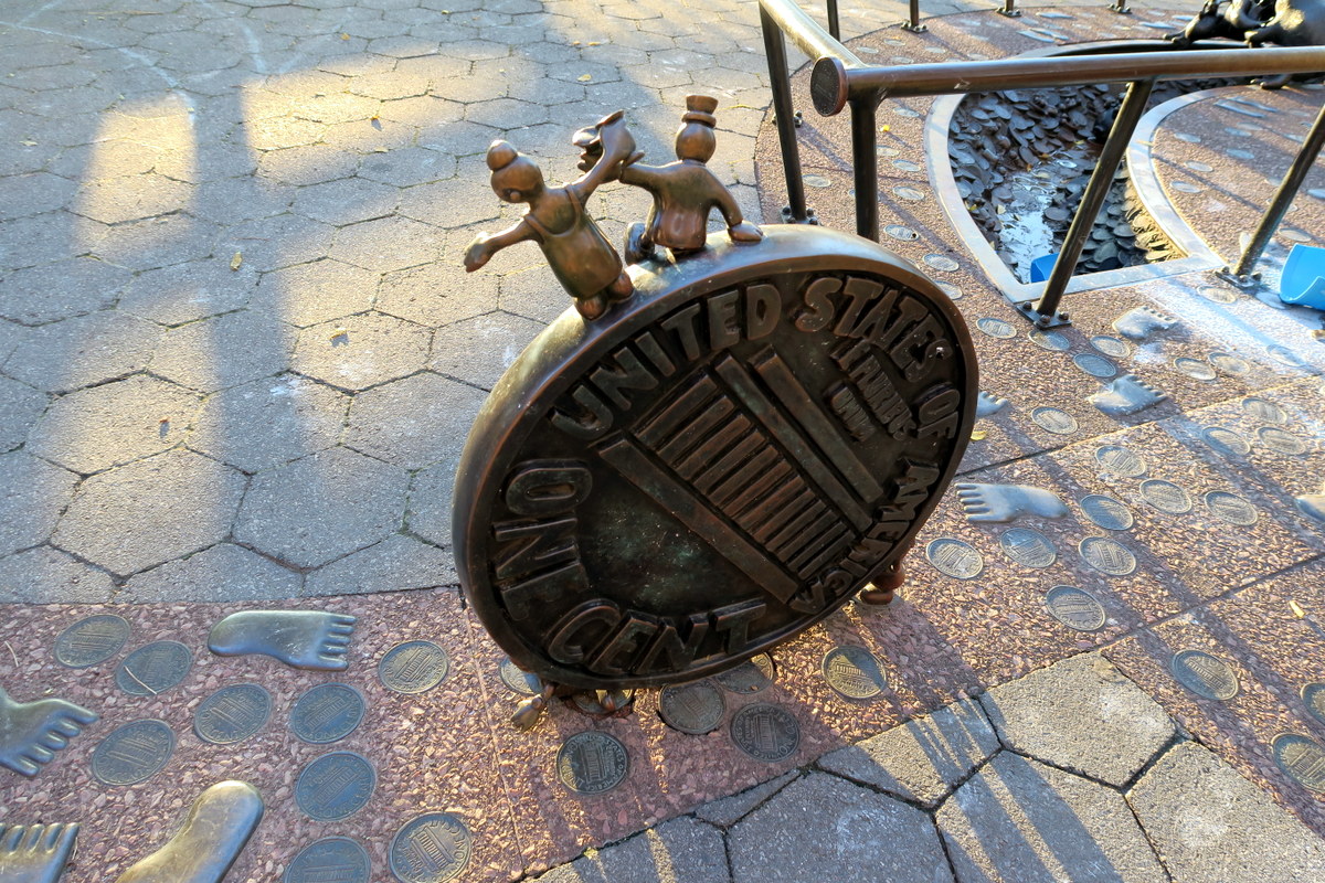 Если пройтись немного на север вдоль гудзона, набредём на такой милый парк, в котором куча маленьких скульптурок работы Тома Оттернесса. Чувак по всему миру своих человечков расставил, но тут самое большое сборище, что я когда-либо видел. Обязательно прочитайте подробнее об Оттернессе, о его работах, и конкретно о фигурках в этом парке.