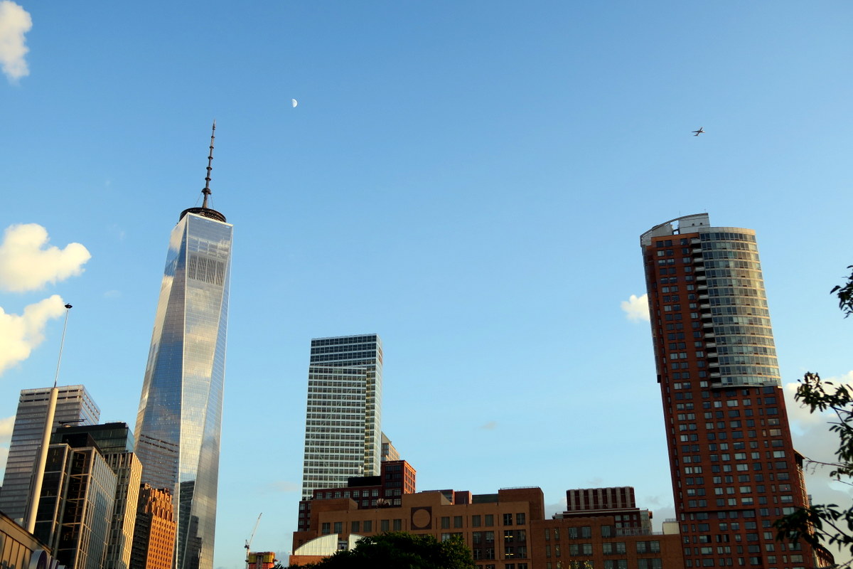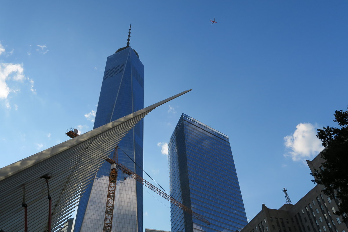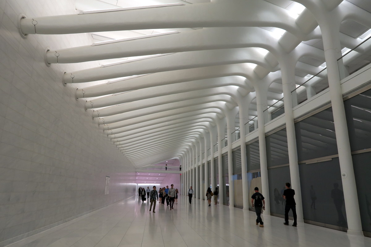 Отсюда рукой подать до нового небоскрёба Всемирного Торгового Центра. Про то как его посещать, и стоит ли - это отдельная история, но сейчас можно полюбоваться им снизу. А ещё поглазеть на причудливое здание Сантьяго Калатравы под названием "Окулус". Его называли самой дорогой станцией метро в мире!