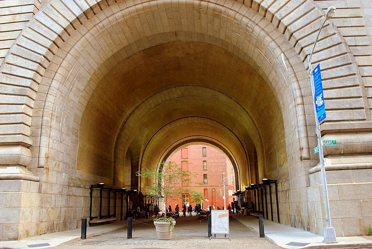 Ещё стоит заглянуть под огромную каменную арку устроенную под Манхэттенским мостом. Это очень интересное пространство, его часто используют для мероприятий и вечеринок.