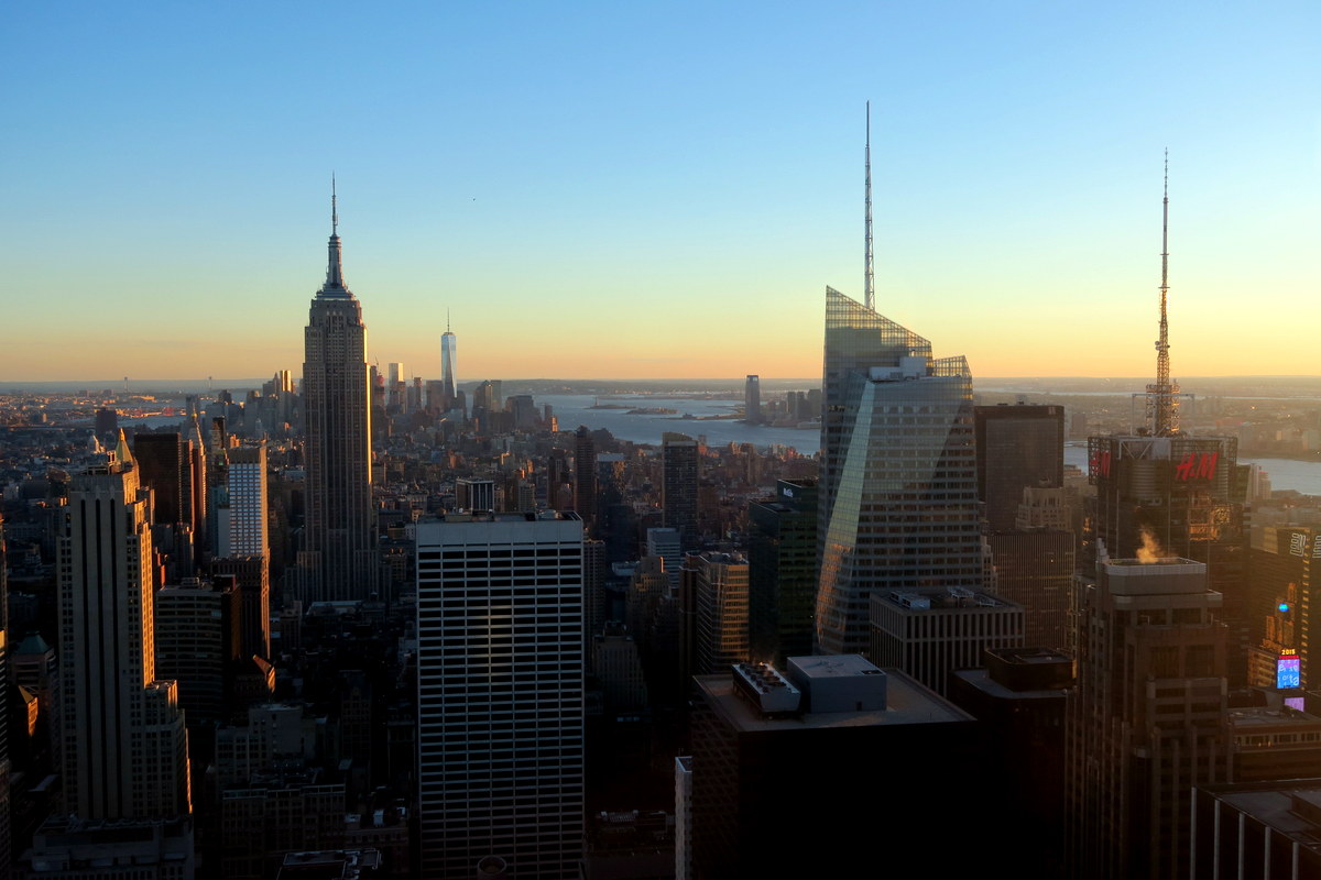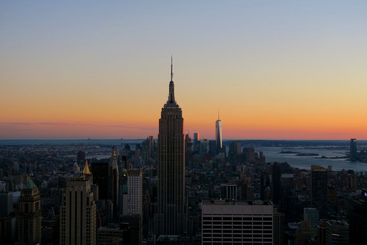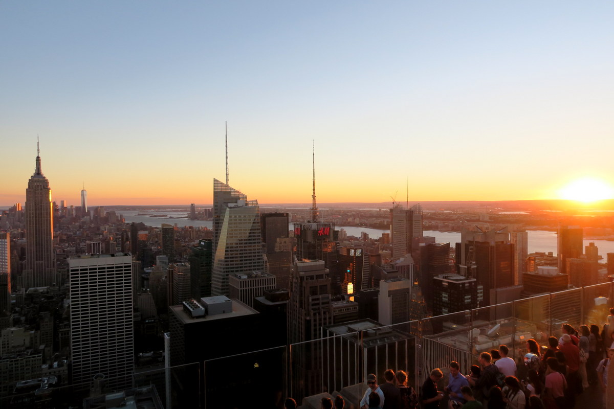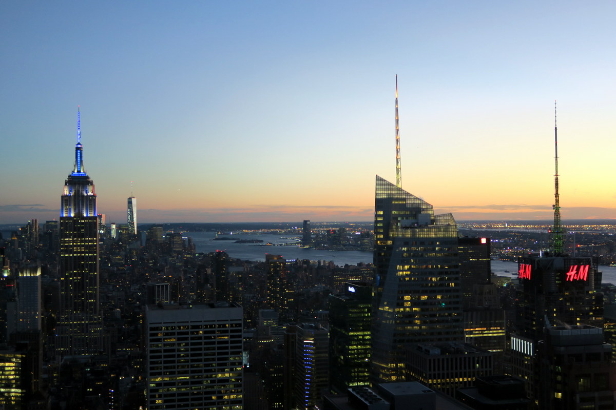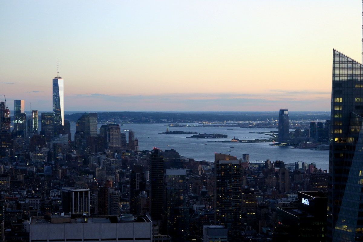 Солнце село. Кстати со смотровой площадки закат очень красивый, так что советую заранее спланировать посещение так, чтоб его застать. Тогда вы увидите и дневной и вечерний Нью Йорк. Только будьте готовы, что с вами закат захочет посмотреть ещё очень много народу.