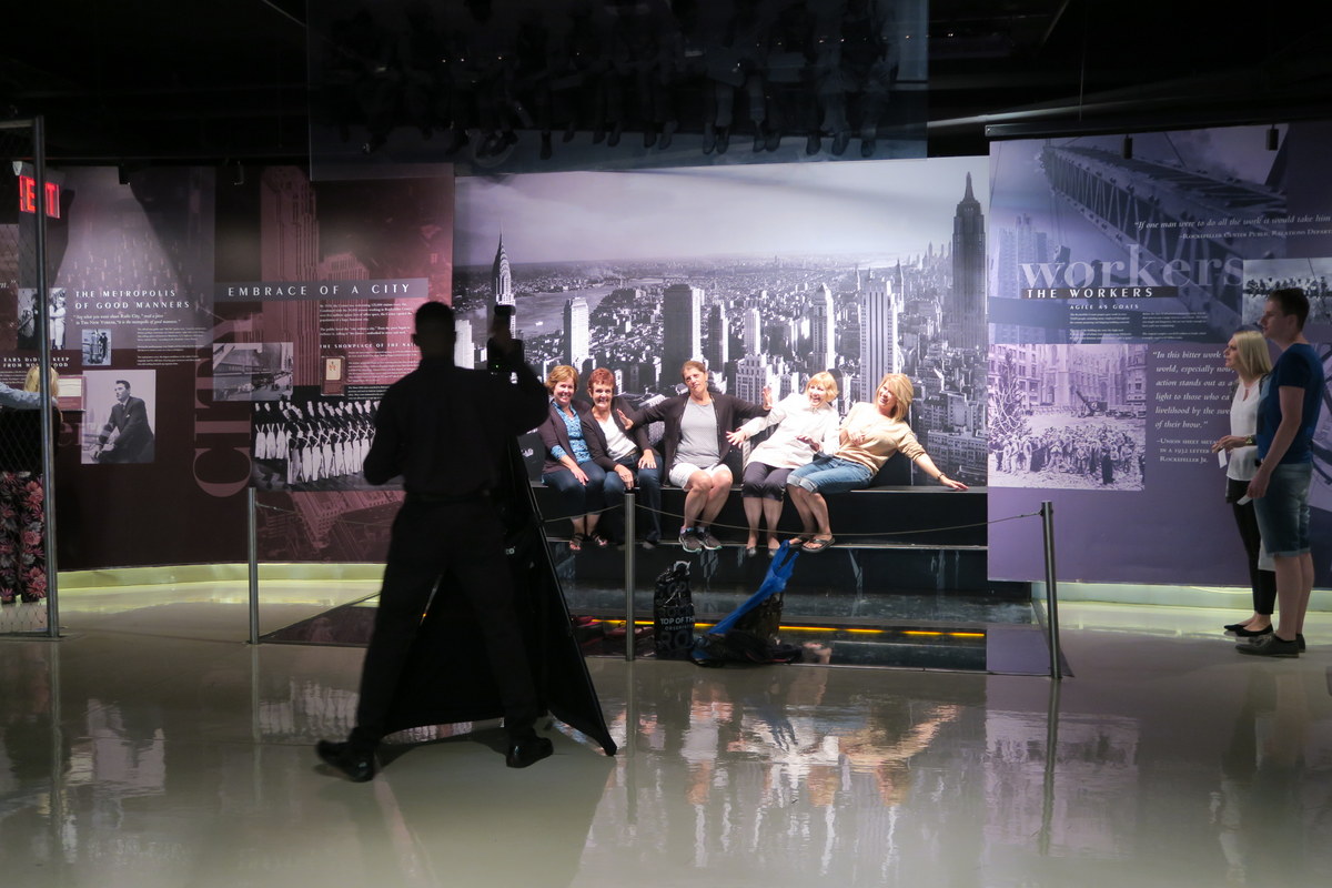 Прямо перед лифтом вверх туристам предлагают воспроизвести знаменитую фотографию обедающих на балке. Тут как всегда - фотографироваться бесплатно, а вот фотографию вам потом попытаются продать.
