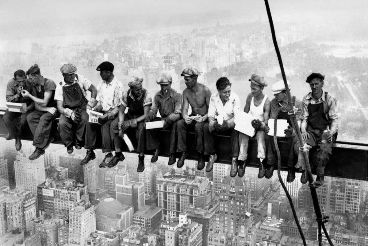Помните вот эту знаменитую фотографию, где работяги обедают на балке строящегося небоскрёба? Это как раз со стройки 30-Rock в 1932 году.