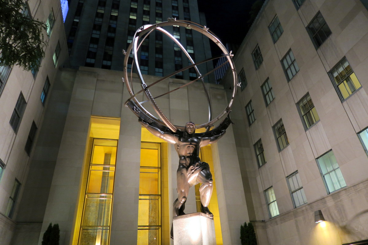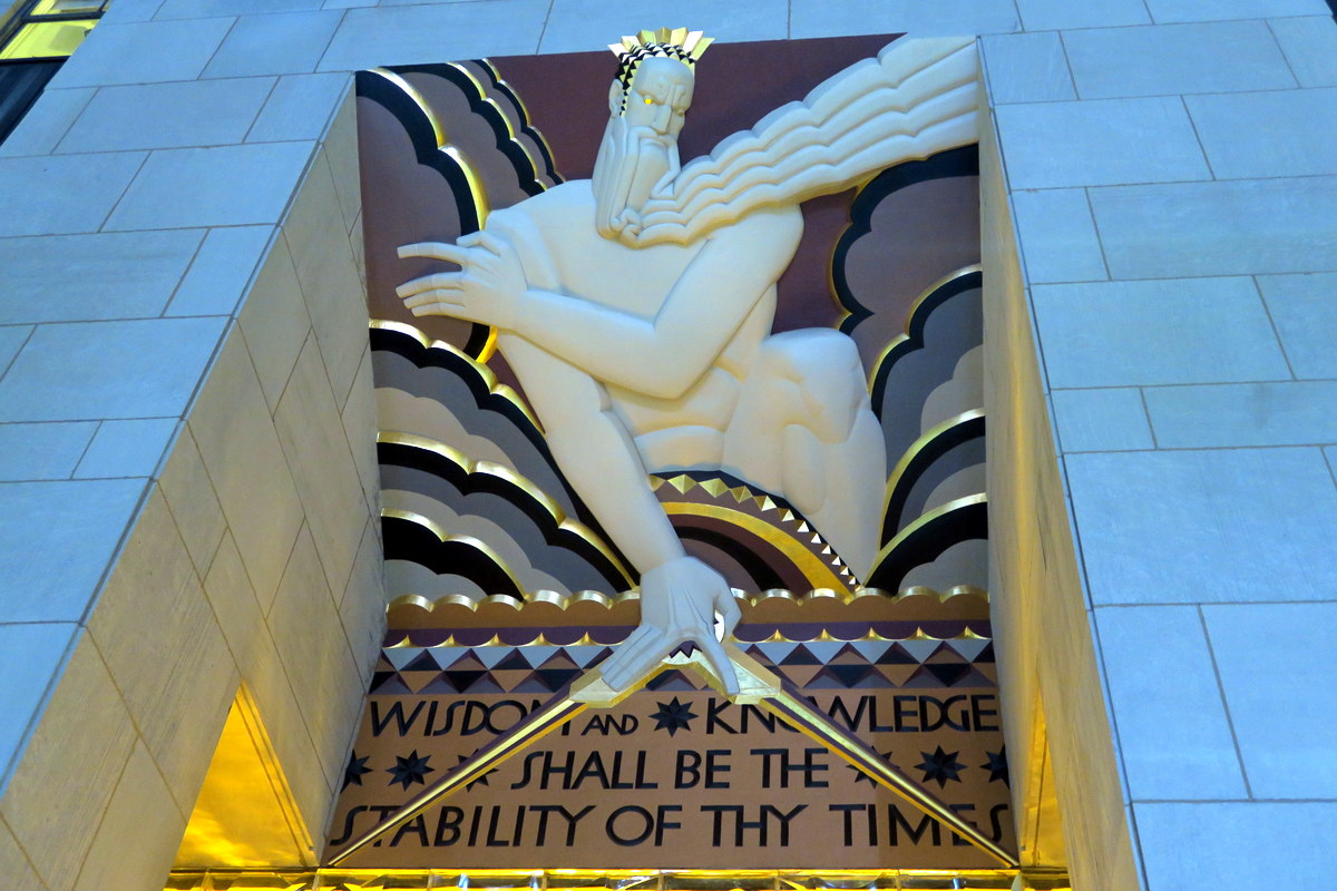 Вот например над главным входом в 30-Rock почему-то изображён Зевс, а под ним, цитата из Книги пророка Исаии (33:6):