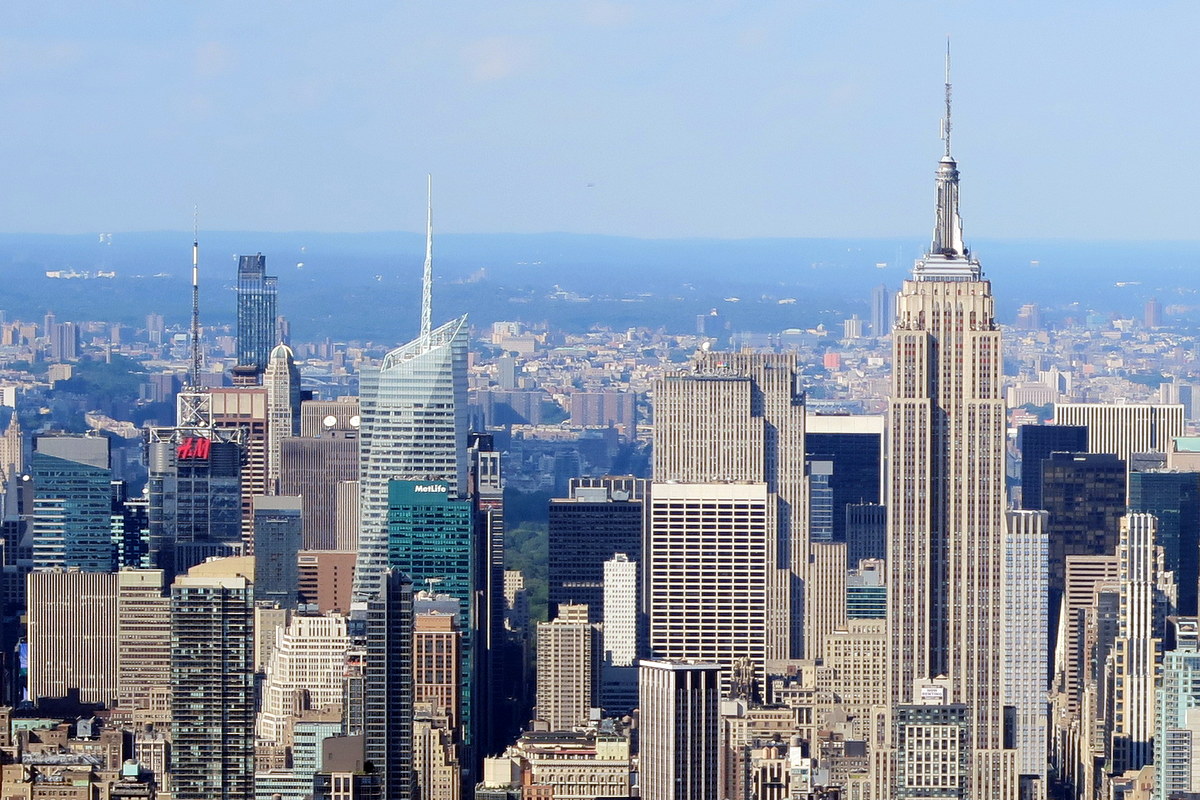 Но конечно главный вид с Top of the Rock - это на юг. Здесь доминирует Empire State Building, виднеется даунтаун с новым небоскрёбом Всемирного Торгового Центра, и много разных других шпилястых высоток.