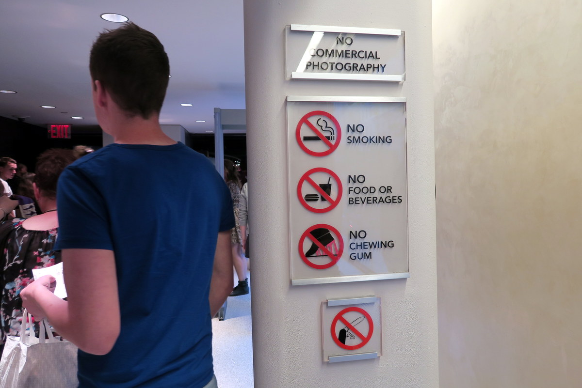 У входа куча запретов. Так и не понял, жвачку вообще нельзя, или просто нельзя выплёвывать на пол...