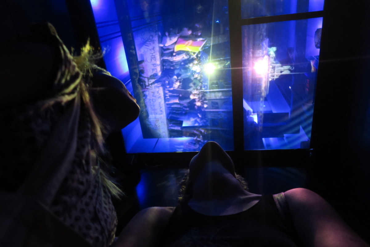 Как видно, здесь в целях безопасности со всех сторон стёкла, но всё же можно при желании протиснуть в щель небольшой фотоаппарат, и снять