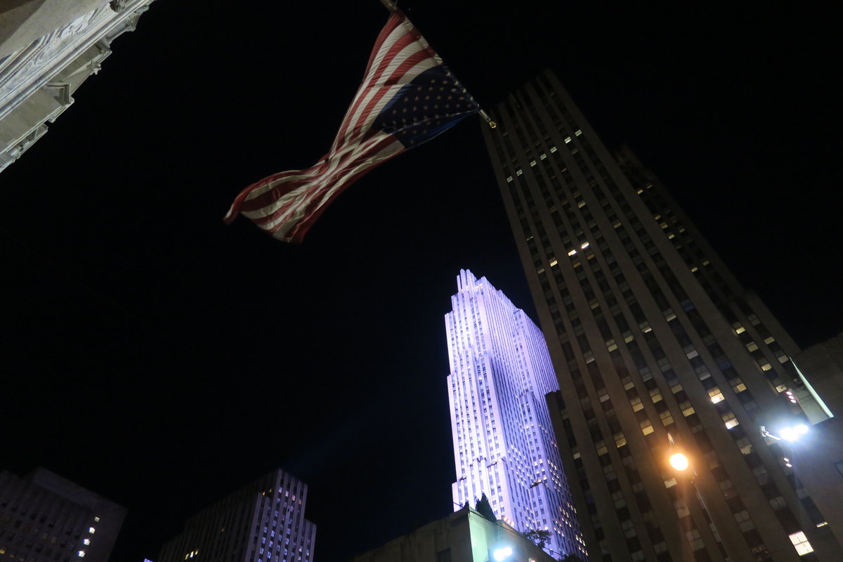 А вот как 30-Rock выглядит снизу. Всё здание озарено светом прожекторов, кажется что оно само светится.