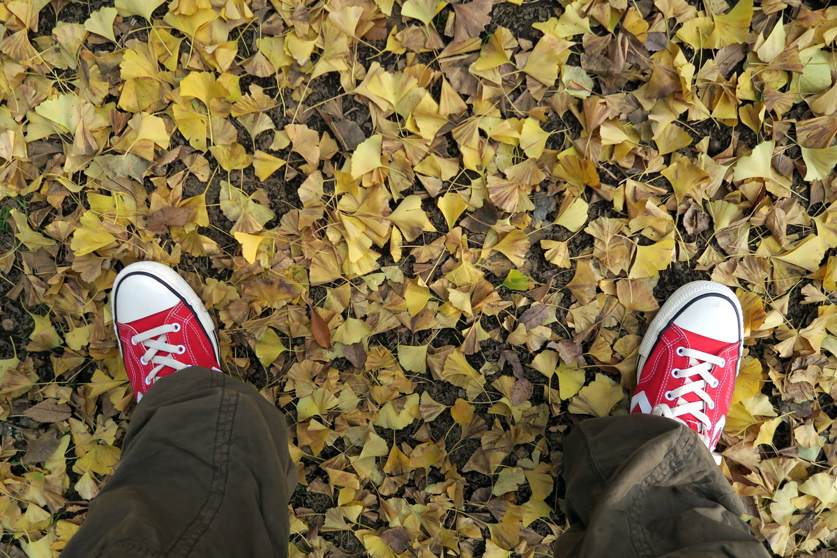 В парке Ёёги осенью листья гинкго плотным ковром покрывают землю. Вот оно, розенбаумовское "на ковре из жёлтых листьев..."