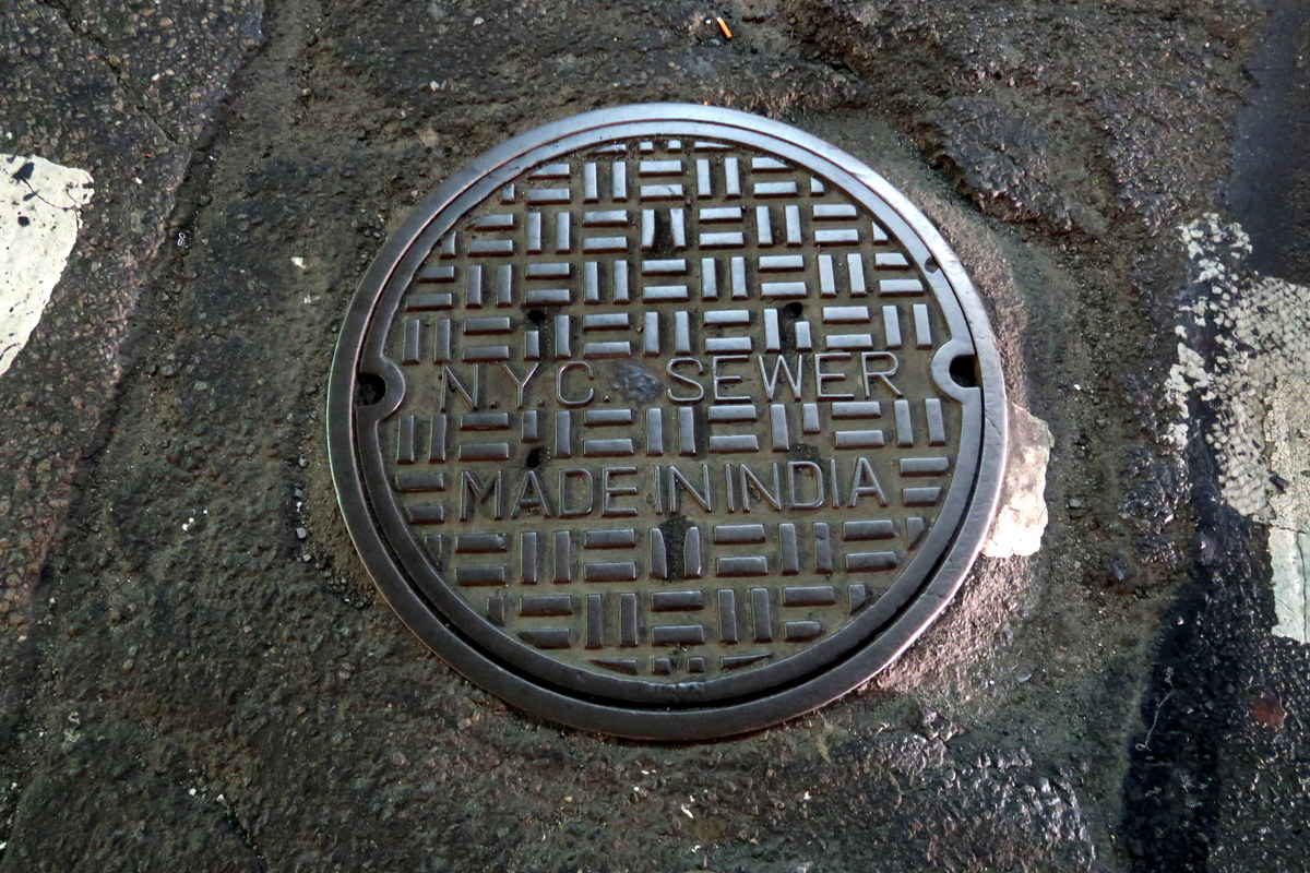 Для сравнения, у нас в Нью Йорке люки выглядят вот так. (Почему-то их делают в далёкой Индии, и в адских условиях.)