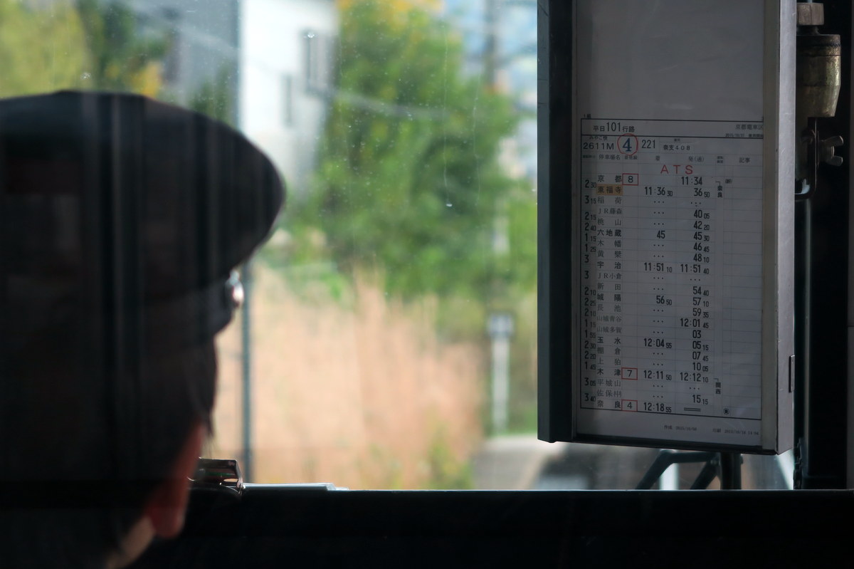 Перед ним распечатано расписание маршрута. Пунктуальность японских поездов легендарна. Все знают, что они практически никогда не опаздывают. А если и опаздывают, то об этом сообщается на табло на станции. Задержка в две-три минуты - уже повод оповестить пассажиров, чтоб не переживали.