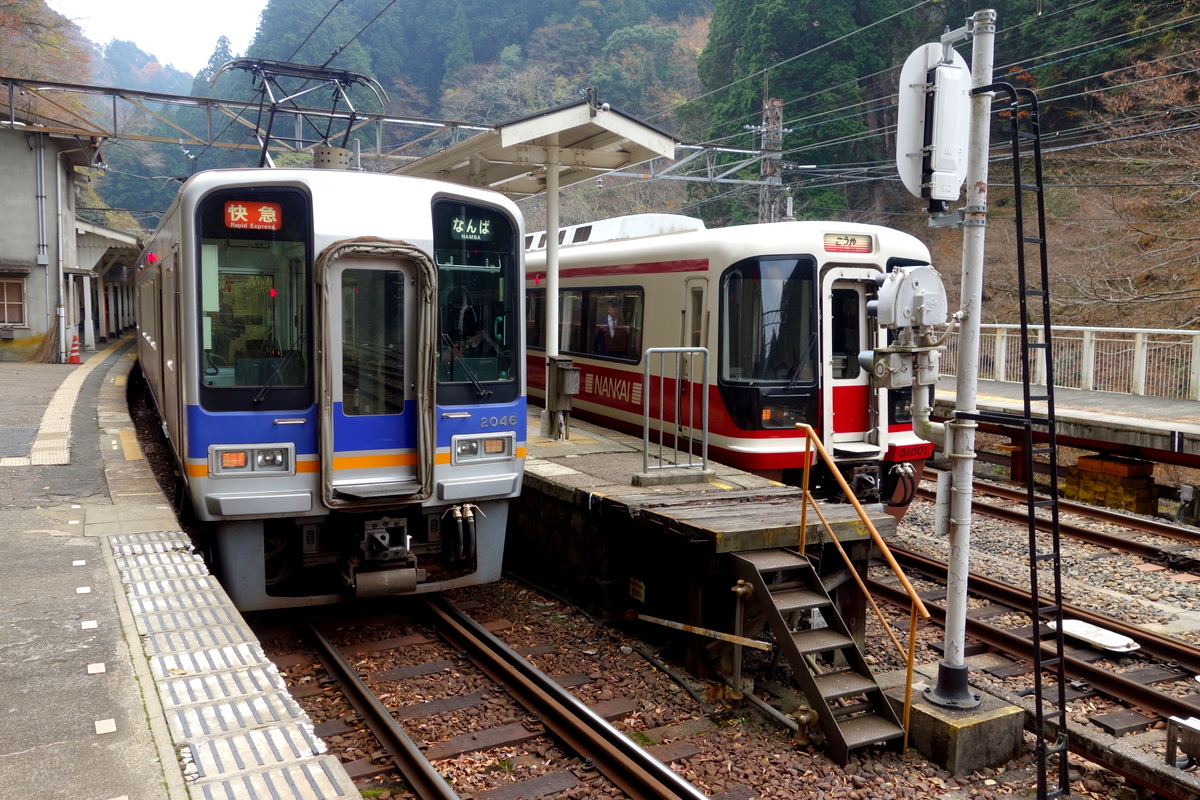 Помимо JR по всей стране есть небольшие независимые линии железных дорог, ими управляют отдельные компании. Часто пути JR и не-JR проходят очень близко, и маршруты чуть ли не дублируют друг друга. Станции тоже бывают очень близки. Например вот две станции в пригороде Киото (недалеко от святилища Фусими Инари), разделённые стенкой. Слева - станция JR, справа - компании Keihan Railways.