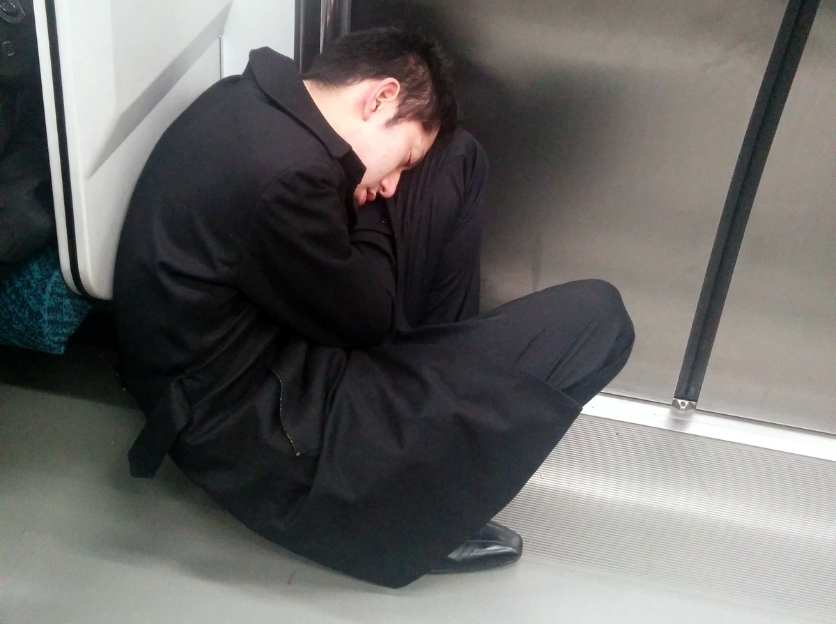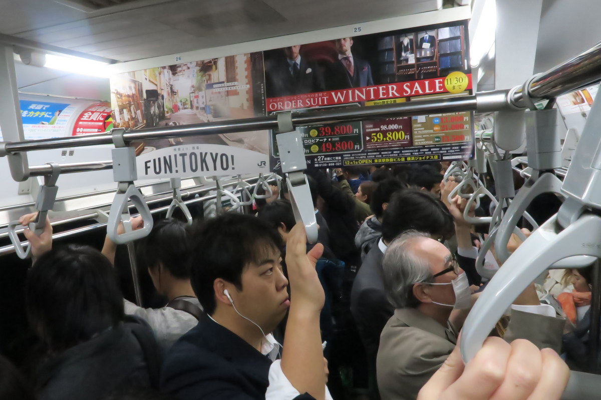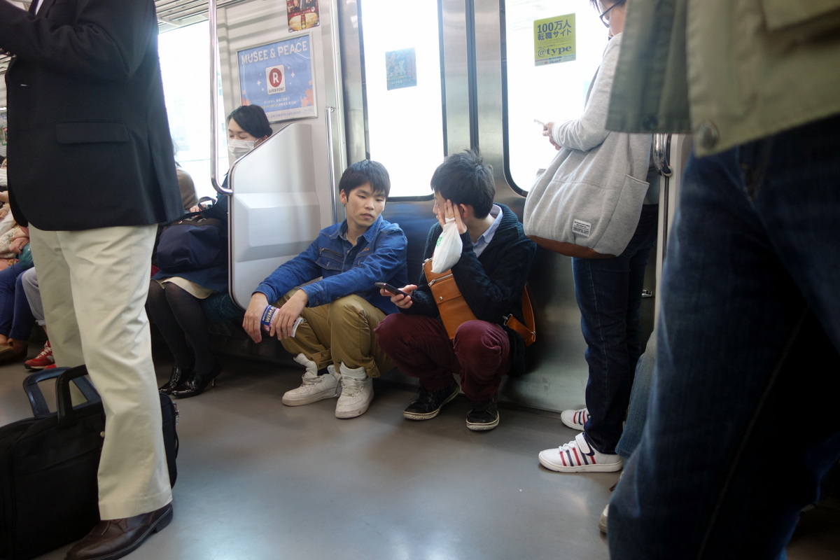 А даже если свободного места нету, можно присесть на корточках у дверей. "Не Прислоняться", это не про японское метро.